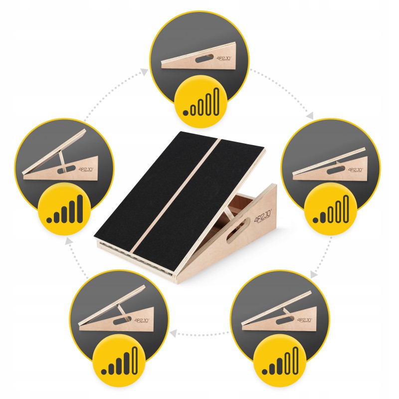 Клин-платформа Slant Board від польського бренду 4Fizjo - це універсальний помічник для тих, хто прагне досконалості у своїх тренуваннях! Ця інноваційна платформа створена, щоб покращити вашу гнучкість, збільшити глибину присідань та ефективно розім'яти м'язи ніг, стегон і спини. Вона ідеально підходить для фітнесу, йоги, фізіотерапії або навіть відновлення після травм - ви зможете виконувати вправи з максимальним комфортом і безпекою. Завдяки регульованому нахилу (5 рівнів) ви легко адаптуєте платформу під свої потреби: від легкого стретчингу до інтенсивних силових тренувань. А компактний дизайн і зручне складання роблять її відмінним вибором для домашніх занять або використання у спортзалі.