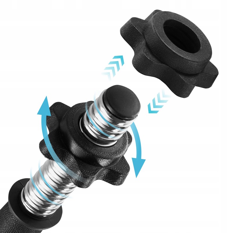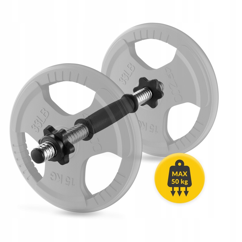 Грифи від 4Fizjo виготовлені із хромованої сталі та витримують навантаження до 50 кг, забезпечуючи довговічність навіть при регулярних тренуваннях. Робоча частина грифа має діаметр 25 мм, що ідеально підходить для стандартних дисків, а гвинтова конструкція з обох кінців гарантує міцне утримання вантажів за допомогою чотирьох затискачів із комплекту. Зона хвату довжиною 12 см покрита спеціальним антиковзким покриттям, яке зменшує втому рук і запобігає випадковому випусканню грифа. Вага кожного грифа становить лише 0.6 кг, що дозволяє легко регулювати навантаження, додаючи або знімаючи диски. Комплект із двох грифів та чотирьох затискачів дає можливість тренуватися з максимальною гнучкістю, не витрачаючи зайвий час на збірку.