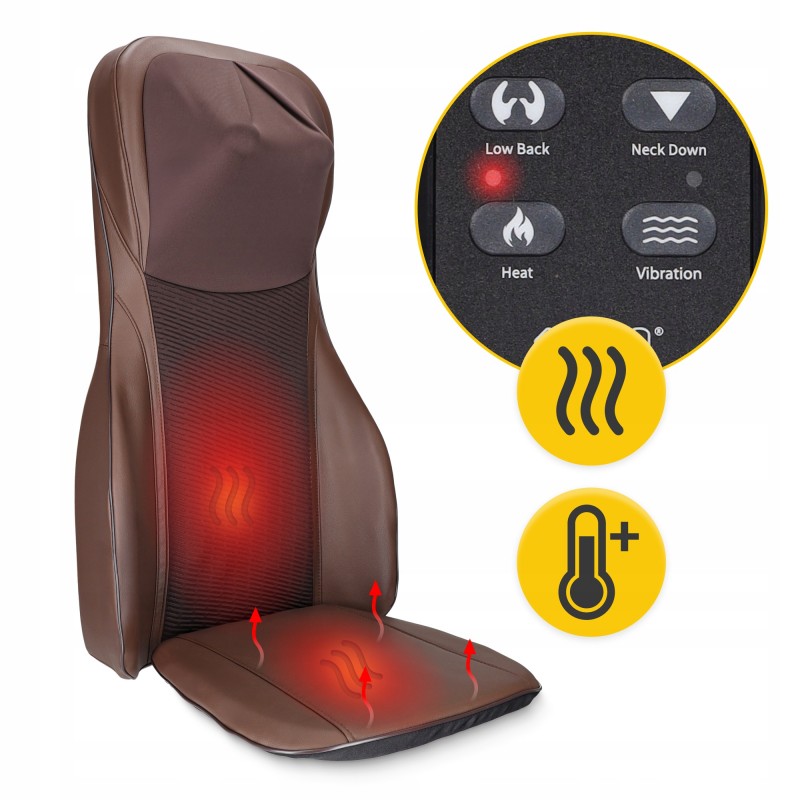 Масажна накидка 4Fizjo Ultra вражає своєю продуманістю та ефективністю. Вона виготовлена з міцної екошкіри та поліестеру, оснащена 12 масажними головками, які опрацьовують верхній і нижній відділи спини, шию та поперек. Функція підігріву регулюється окремо, забезпечуючи приємне тепло, яке знімає спазми та покращує м'язову еластичність. Накидка живиться від мережі (її потужність 48 Вт) або автомобільного адаптера (12 В), що робить її ідеальною для подорожей. Розміри спинки (83 x 45 см) і сидіння (43 x 39.5 см) забезпечують повне охоплення проблемних зон, а пульт керування дозволяє вибирати зони масажу (весь хребет, шия, верхня/нижня частина спини), інтенсивність та режими (вібрація, синхронний масаж шиї та спини, інтервальний точковий вплив). Вага масажера 9.5 кг робить його мобільним, а елегантний дизайн гармонійно впишеться в будь-який інтер'єр. Додаткова кишенька для пульта та таймер на 15 хвилин забезпечують максимум комфорту під час сеансу.