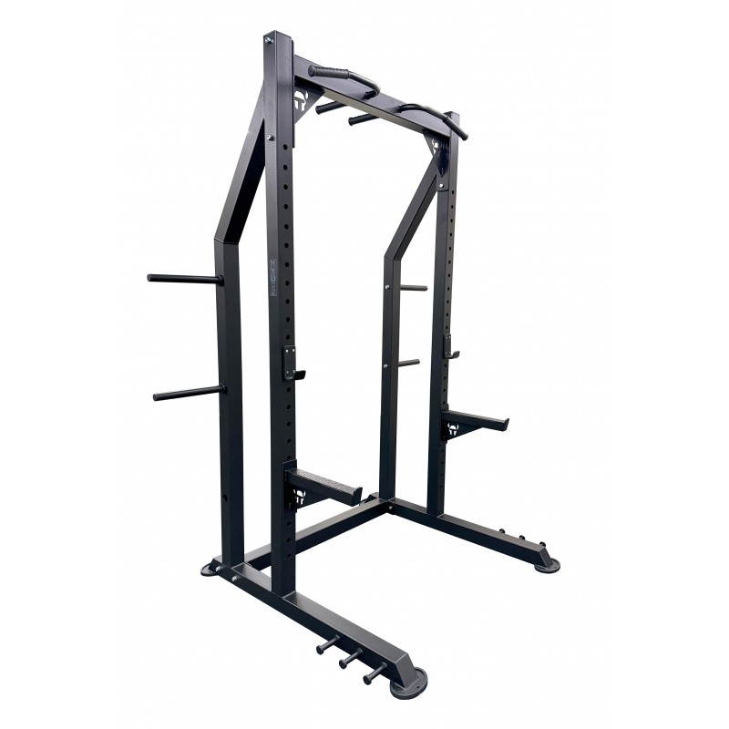 - Зручні упори: Оснащена страхувальними упорами для безпечного виконання присідань з максимальними вагами.