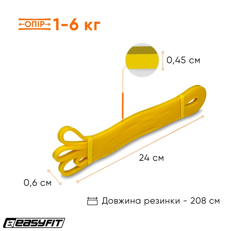 Гумова петля EasyFit 1-6 кг, жовта, код: EF-2654-1-EF