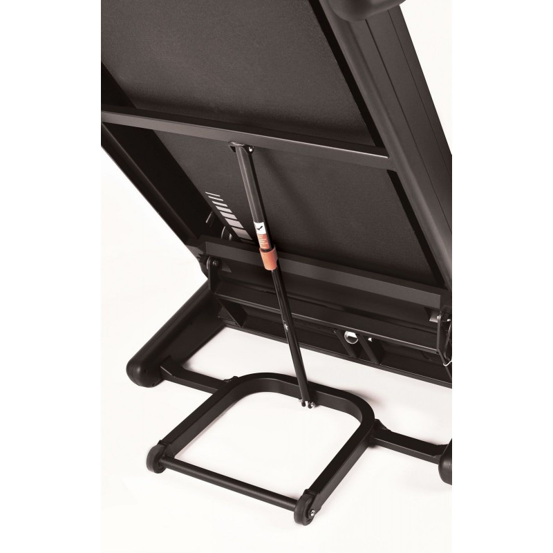 Додатково, бігова доріжка оснащена трьома швидкостями вентилятора, тримачем для смартфона/планшета, інтегрованими динаміками та можливістю використання популярних фітнес-додатків через вбудоване Bluetooth з'єднання. Також передбачена система амортизації з 8 подушками, що забезпечує комфорт та зниження навантаження на суглоби під час тренувань.