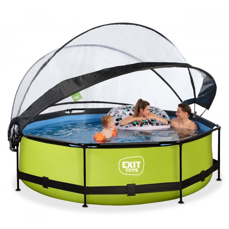 Басейн круглий з куполом Exit "Лайм" 300 х 76 см виглядає лаконічно і елегантно. З зовнішньої сторони - тканина в кольорі "Лайм", що зробить його розміщення в саду, на дачі або у дворі будинку особливо естетичним.
