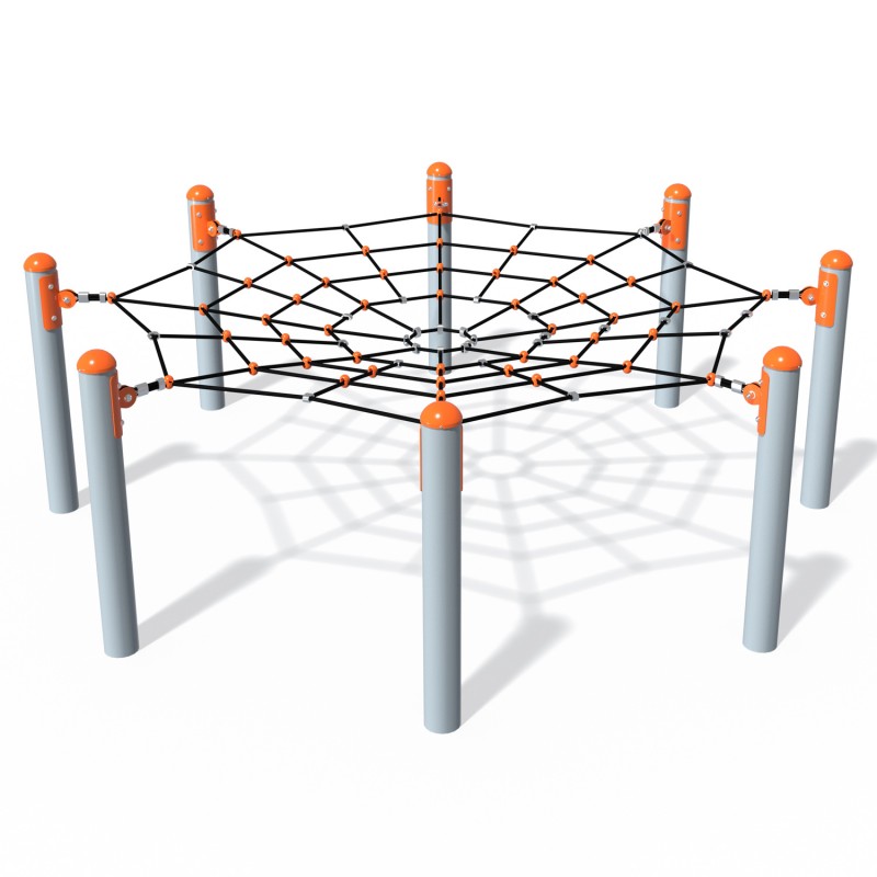 Канатна павутина складається з металевих опор, до яких у верхній частині кріпляться канатна сітка, що має форму павутинки. Металеві опори встановлюються методом бетонування, канати натягуються на опори за допомогою спеціальних кріплень.