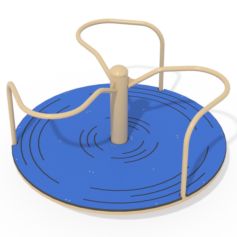 Каркас каруселі виконано з металевого профілю, а платформа – з надміцного HDPE пластику. Виріб обладнано трьома металевими поручнями, за які потрібно міцно триматися під час розкачування. Карусель можуть розкручувати інші діти, або самостійно, відштовхуючись однією ногою від землі. Така енергійна забава точно прийдеться до душі дітям в будь-якому віці. Обладнання відрізняється стійкістю до стирання, вигорання та механічних пошкоджень, яскраві кольори зберігають насиченість навіть протягом багатьох років активного користування. Елементи з металу покриті порошковою фарбою. Карусель не містить гострих кутів та деталей, через які може травмуватися дитина.
