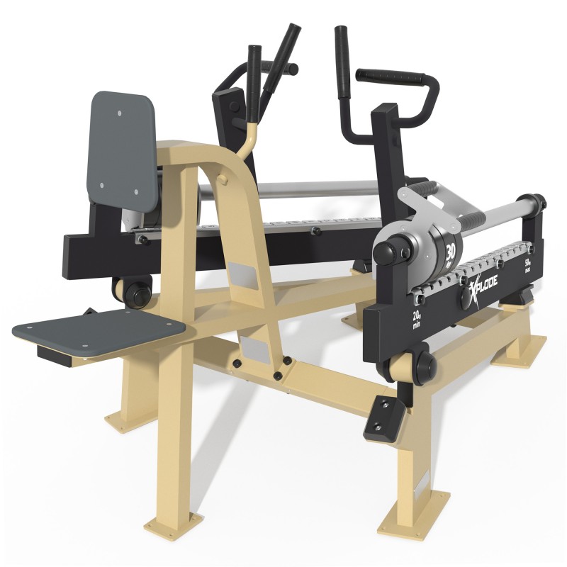 Тренажер із вбудованими вагами Важільна тяга KF804-S призначений для тренування м'язових груп спини. Конструкція тренажеру обладнана автономними важелями: спортсмен має змогу окремо тренувати ліву і праву руку, а також одночасно обидві руки. На спортивному обладнанні встановлені ручки прямого та горизонтального хвату, що розширює можливість навантаження другорядних м'язів. Дискретна система навантаження регулюється вручну шляхом переміщення вантажу по напрямній, що дає змогу налаштувати тренажер для максимально ефективного тренування спортсменам з різним рівнем фізичної підготовки.
