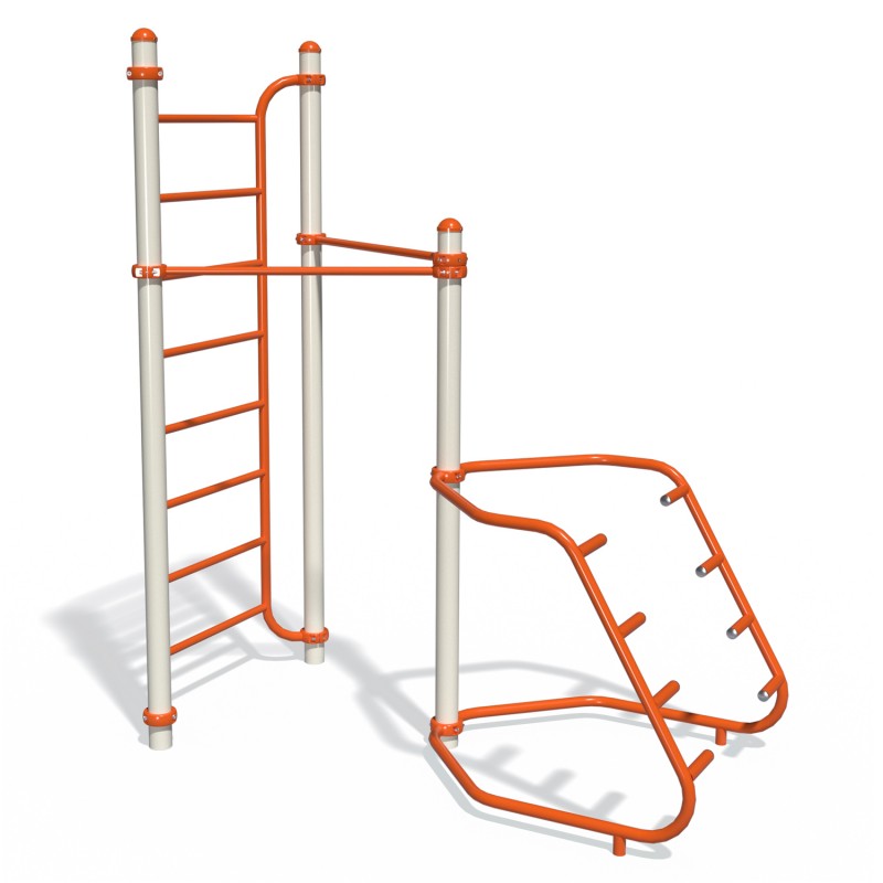 Станція для розтягування складається з кількох елементів для максимально ефективного опрацювання всього тіла: шведської стінки, приставки для віджимань, який має поручні на різних рівнях, та двох турніків. На обладнанні можна задіяти різні групи м'язів.
