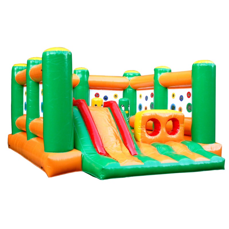 Конструкція батута виконана без єдиного твердого елемента, всі частини надувні та повністю безпечні. Складається з товстого дна, надійних бортиків, які розташовані вздовж батутної арени та найцікавіших ігрових зон, серед яких невисока гірка для малюків, надувні стовпчики з яскравим дизайном та перешкоди у вигляді лаза.