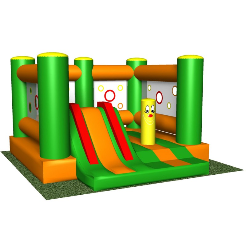 Конструкція батута виконана без єдиного твердого елемента, всі частини надувні та повністю безпечні. Складається з товстого дна, надійних бортиків, які розташовані вздовж батутної арени та найцікавіших ігрових зон, серед яких невисока гірка для малюків та надувніий стовпчик з яскравим дизайном.