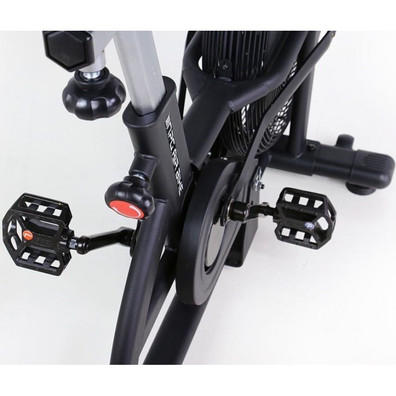 Спеціальна конструкція пристрою залучає до тренування все тіло - ми крутимо педалі ногами, а руками тягнемо і штовхаємо ручки керма. Завдяки такій конструкції вдається досягти високих енерговитрат (до 50 ккал/хв), що робить це обладнання ідеальним для:швидка розминка перед силовим тренуванням (достатньо 5 хвилин інтенсивної їзди)кардіотренування - підвищення аеробних можливостейінтервальне тренування - ми самі регулюємо опір - чим швидше ми обертаємося, тим більший опірспалювання жирової тканини - тренування з помірною інтенсивністю при 80% HR MAX - обладнання сумісне з системою вимірювання серцевого ритму POLARВисокоякісні матеріали, які використовуються у виробництві, і повітронепроникність роблять це обладнання дуже надійним і не вимагає підключення до електрики. Просте та інтуїтивно зрозуміле керування робить його ідеальним навіть для людей похилого віку, а величезні навчальні можливості роблять його ідеальним у світі функціонального тренування.Виробник бренду NPG гарантує, що кожен Air Bike розроблений таким чином, щоб витримувати навантаження, які дають найкращі спортсмени на найвищому рівні інтенсивності тренувань.Технічні дані:розміри: