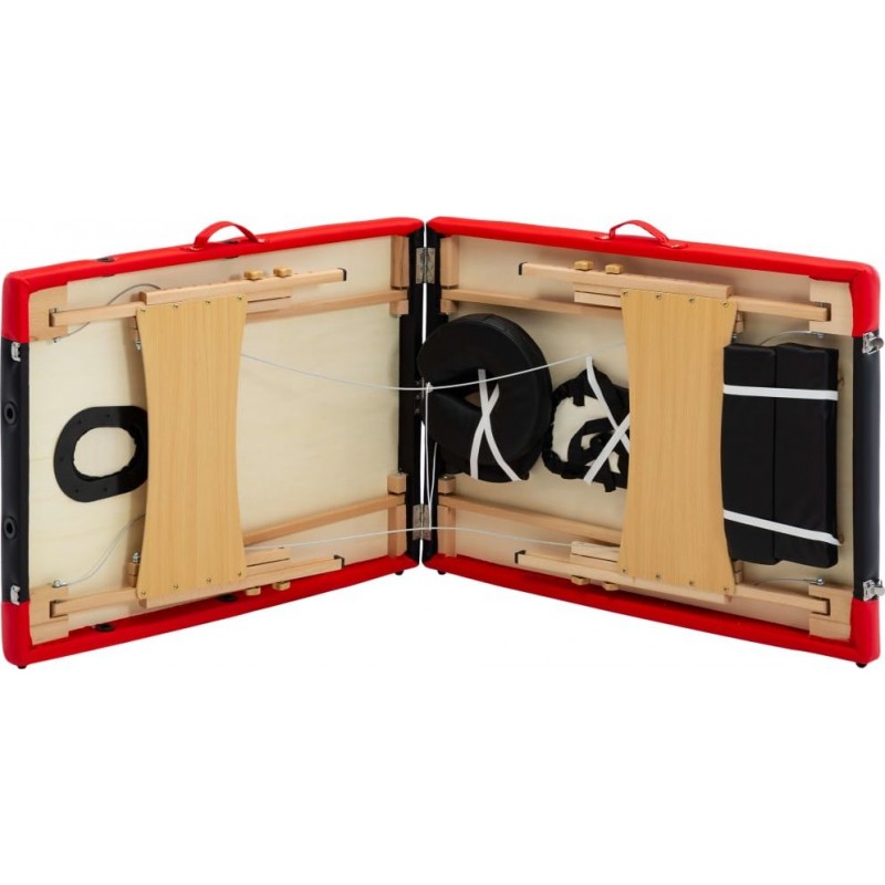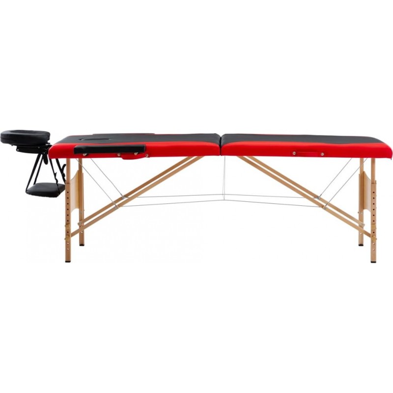 Масажний стіл 2 зони vidaXL дерев"яний, чорний-червоний, код: M-6937270-IN