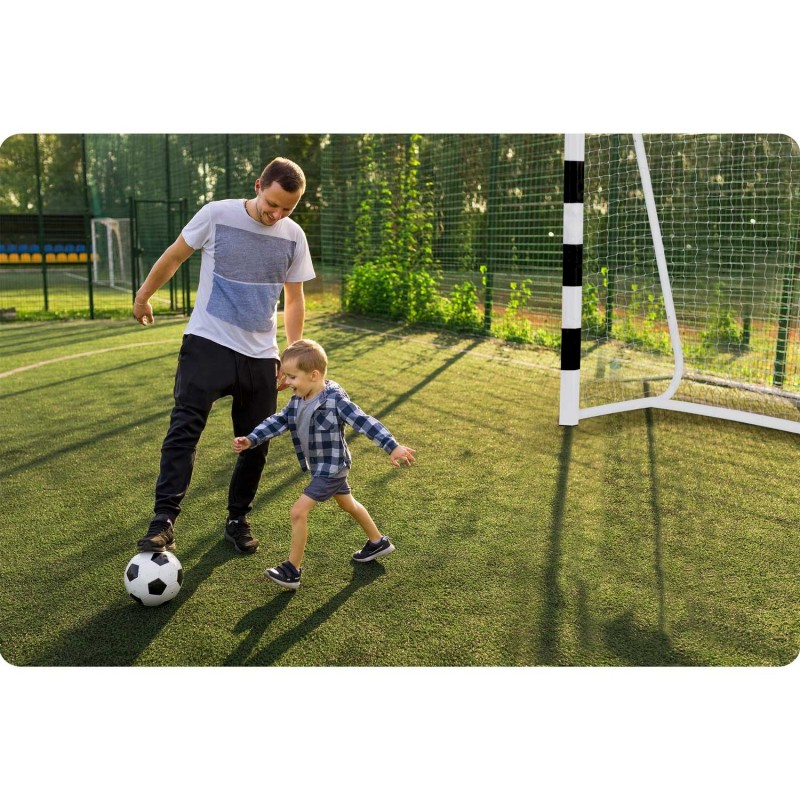 Високоякісні футбольні ворота з міцними сталевими стійками. Сталевий каркас забезпечує стабільність воріт під час використання. Футбольні ворота мають невелику вагу. При необхідності ворота можна легко перемістити в будь-яке місце. Сітка виготовлена з міцного матеріалу PE (поліетилен), що забезпечує максимальну довговічність виробу. Завдяки структурі сітки, ви можете бути впевнені, що будете використовувати її протягом багатьох років.