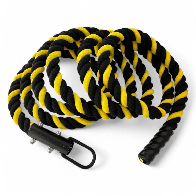 Канат для лазіння Orlins CrossFit х/б 10 м, діаметр 40 мм з кронштейном, жовто-чорний, код: RO-209