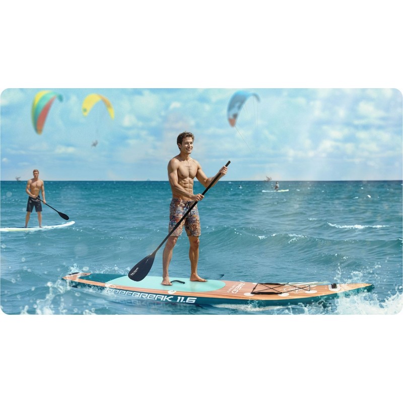 • Герметична кришка: дошка для SUP зберігає свою плавучість протягом усього використання завдяки надгерметичному клапану. У комплект входить ключ для прокачування. Треміальна SUP-дошка з тришаровою ПВХ-конструкцією, вбудованою карбоновою рейкою та посиленими
