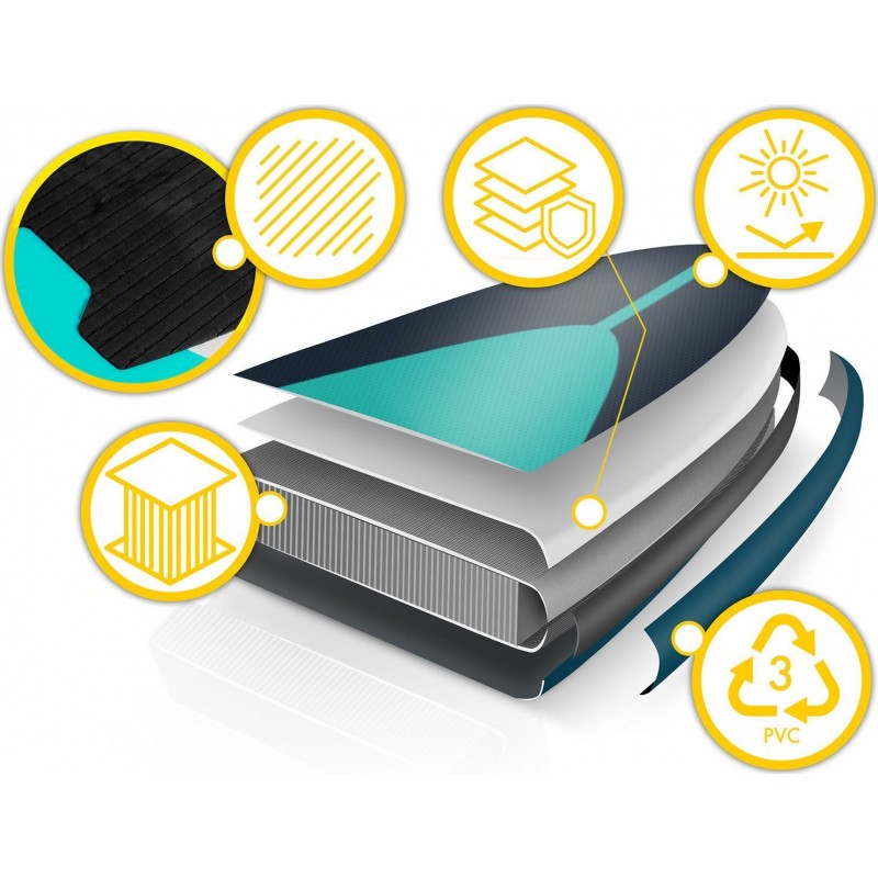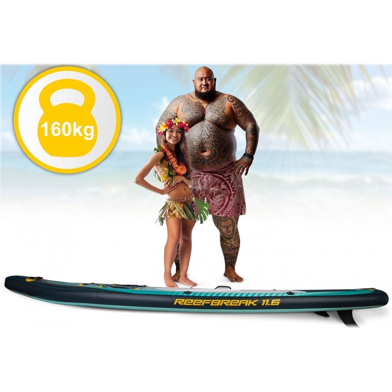 Завдяки п'яти практичним ручкам дошку легко переносити, а додаткові аксесуари, такі як сітка для кріплення рюкзака, підвищують її функціональність. Легкий дизайн та зручність використанняSUP-дошка Reefbreak важить лише 11,5 кг, що робить її транспортування та маневрування на воді надзвичайно легким. Його об'єм 330 літрів та максимальна вантажопідйомність до 220 кг роблять його чудовим вибором як для новачків, так і для більш досвідчених користувачів.Технологія Drop Stitch Light – міцність та легкістьДошка була створена за інноваційною технологією Drop Stitch Light, яка забезпечує її високу міцність при збереженні низької ваги. Подвійна тканина та тришарова ПВХ-конструкція гарантують тривале використання, а нековзка, стійка до ультрафіолетового випромінювання поверхня забезпечує безпеку під час плавання. Висока стабільність завдяки інноваційним рішеннямІнноваційні рішення, що використовуються в SUP-дошці Reefbreak, забезпечують виняткову стійкість на воді. Завдяки щільній пробці, дошка зберігає плавучість протягом усього використання, що забезпечує комфортне та безпечне плавання.