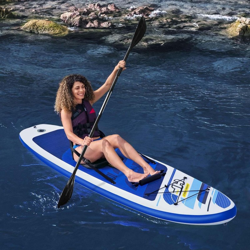 Надувна SUP дошка Bestway Hydro Force Oceana -є чудовою універсальною дошкою та ідеальним вибором для новачків. Незалежно від того, діти це чи дорослі, завдяки SUP кожен швидко навчиться плавати стоячи. Дошка має довжину 305 см і товщину 12 см, що забезпечує відмінну жорсткість і стійкість. Завдяки своїм унікальним властивостям ковзання, веслування - чудова розвага для всіх. Завдяки сидінню та підставці для ніг SUP можна легко перетворити на каяк.