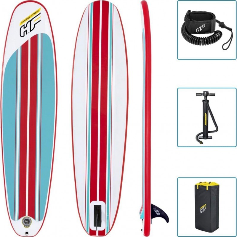 Комплектація: Ручний насос, транспортувальний рюкзак, страхувальний ремінь (Ліш), центральний плавник, ремонтний комплектЗ цією SUP дошкою Bestway Hydro Force Compact Surf 243 ви зможете насолоджуватися водними активностями з комфортом і безпекою, маючи під рукою все необхідне для безперешкодного відпочинку.