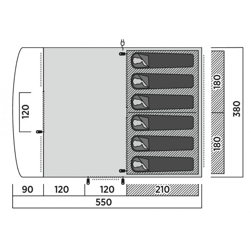 - Розміри намету становить: 550 х 205 х 380 см