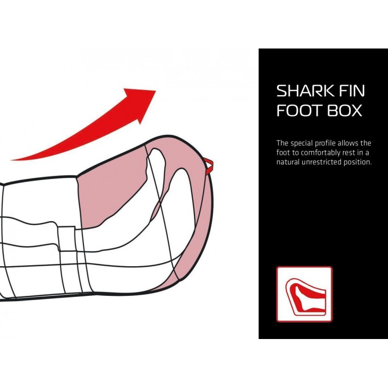 - Місце для ніг у формі акулячого плавника забезпечує свободу рухів та ефективну ізоляцію.