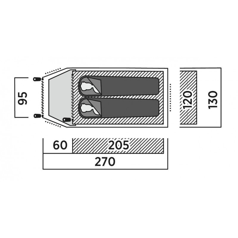 - Комплектація: Внутрішній намет, зовнішній тент, дуги, кілочки, відтяжки, інструкція, сумка-чохол