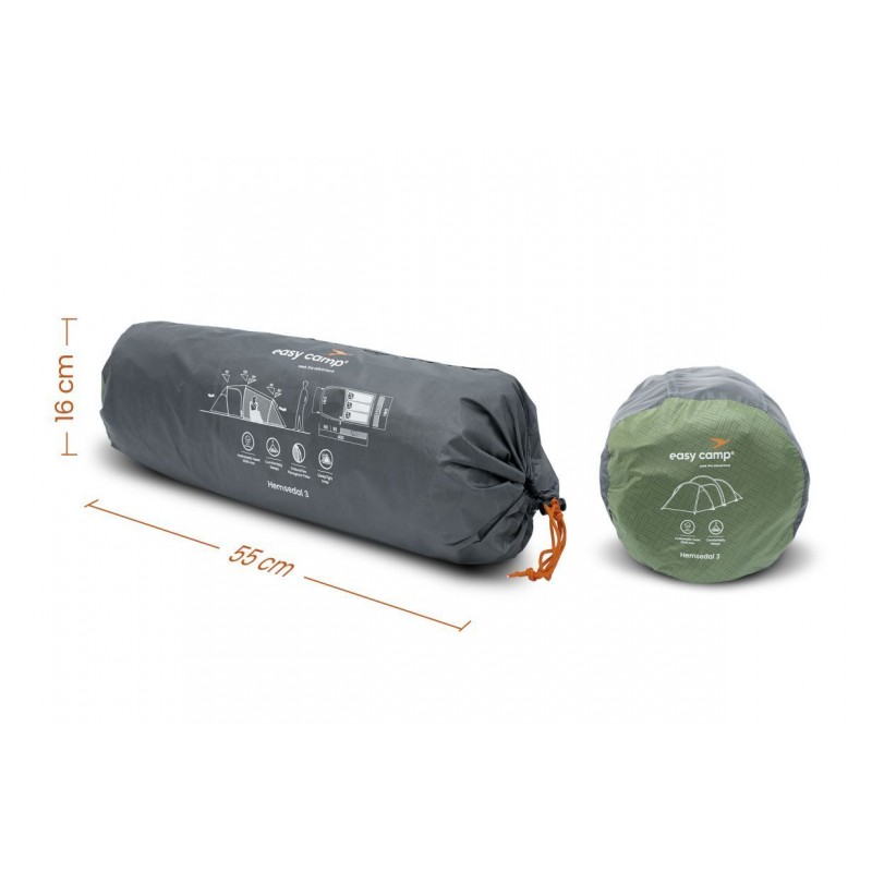Намет Easy Camp Hemsedal 3 - з цим наметом шукачі пригод можуть насолоджуватися підвищеним комфортом та практичними функціями, які зроблять будь-яку пригоду зручнішою та розслаблюючою. Цей тунельний намет має гнучку тристійкову конструкцію та простору веранду, ідеальну для зберігання речей. Намет має передню та задню вентиляцію, внутрішній намет SleepTight, який забезпечує спокійніший сон, а також передній та бічний входи для легкого доступу. Веранда оснащена знімним підлоговим покриттям, що робить намет ідеальним для велосипедних або мотоциклетних турів.