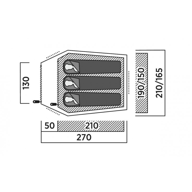 - Розміри намету становить: 270 × 115 × 210 см