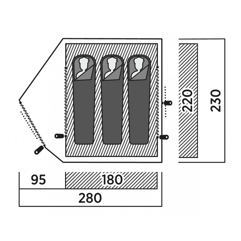 Намет Easy Camp Rondane 3 – розроблений для шукачів пригод пішки або на двох колесах. Компактний розмір у складеному вигляді та легка конструкція оптимізовані для велосипедних та піших походів. Намет має вхід у задній частині для легкого доступу до внутрішнього намету, а у передній частині вентиляцію та вхід з великим тамбуром для зберігання речей, що забезпечує комфортний та зручний відпочинок на свіжому повітрі.