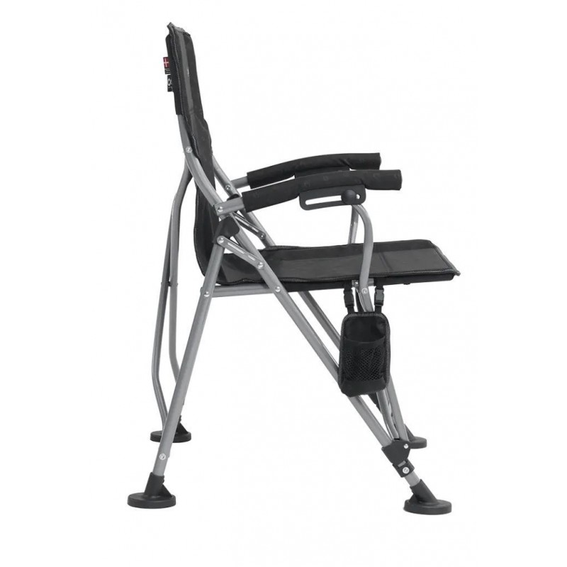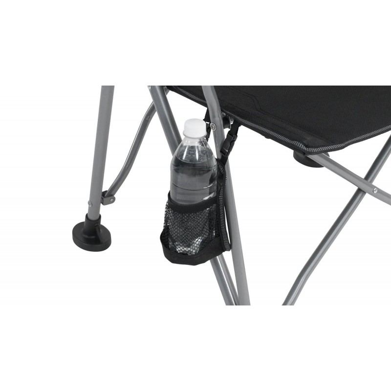 Outwell Campo Black (470233) - розкладний стілець із м'якими підлокітниками та знімним підстаканником. Каркас виготовлений із високоміцної сталі з порошковим фарбуванням та витримує навантаження до 150 кг. Збільшені опори ніжок підвищують стійкість на м'якому ґрунті. Чохол для перенесення полегшує транспортування та забезпечує компактне зберігання, коли стілець не використовується.
