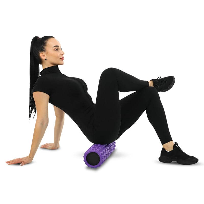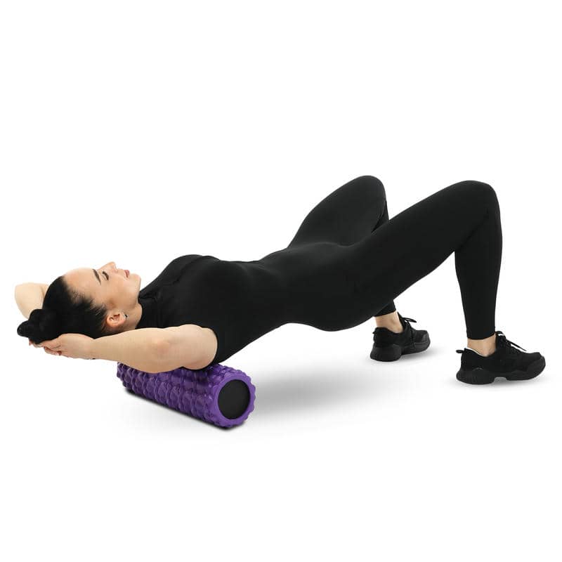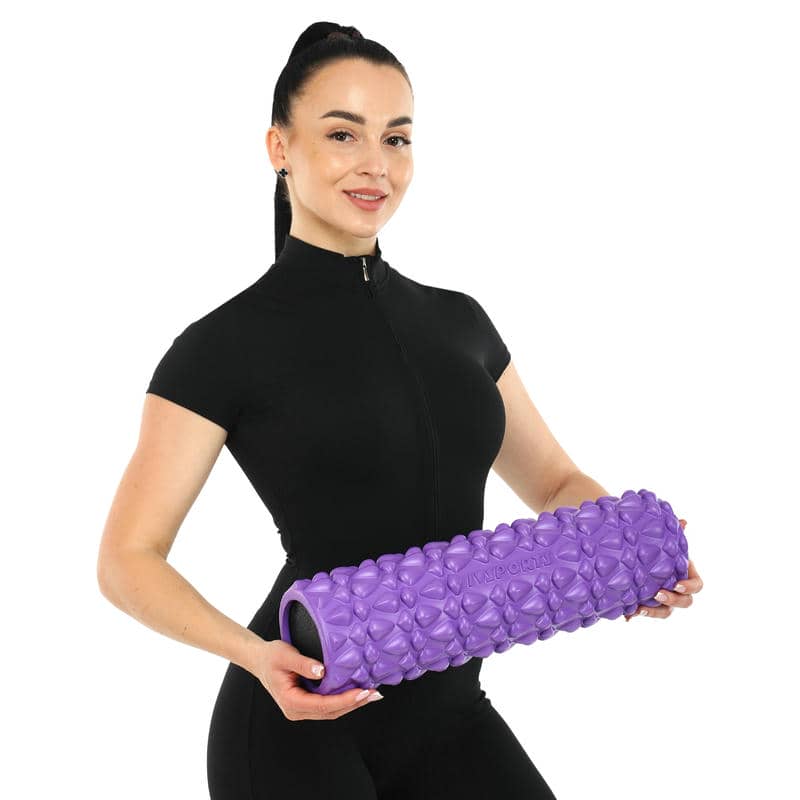 Ролер масажний циліндр (ролик мфр) заповнений піною FitGo Grid Bubble Roller, 450x130 мм, фіолетовий, код: FI-9391_V
