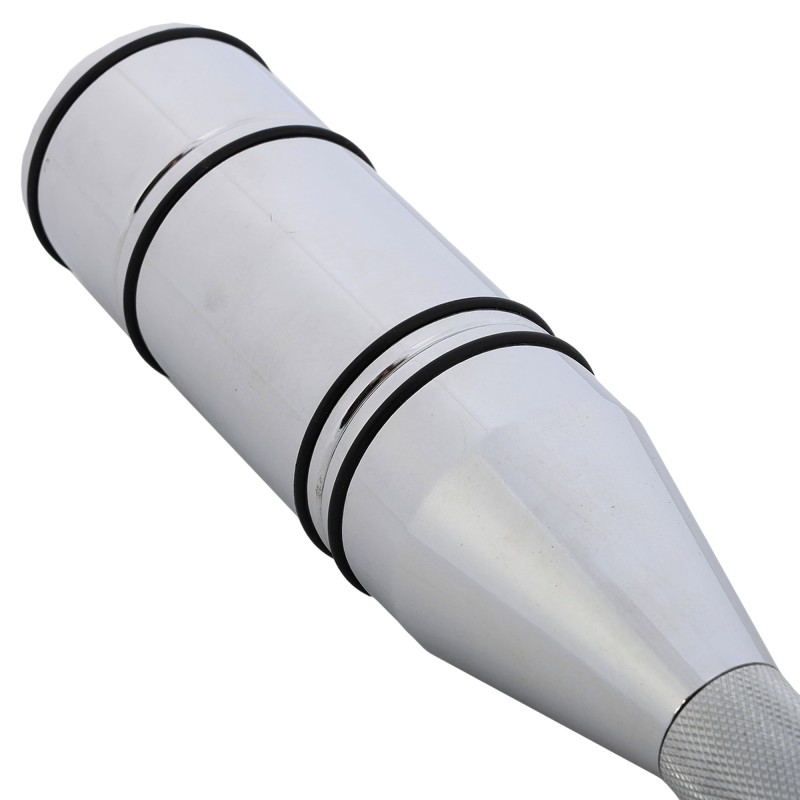 Булава виготовлена з високоякісної вуглецевої сталі з декоративним хромованим покриттям, що забезпечує її довговічність і стійкість до корозії. Вага снаряда становить 12 кг, а довжина 1,2 метра, що робить її зручною для виконання різноманітних вправ. Вбудована протиударна та амортизуюча вставка в стрижні знижує навантаження на суглоби, забезпечуючи безпечні тренування.
