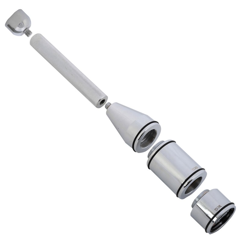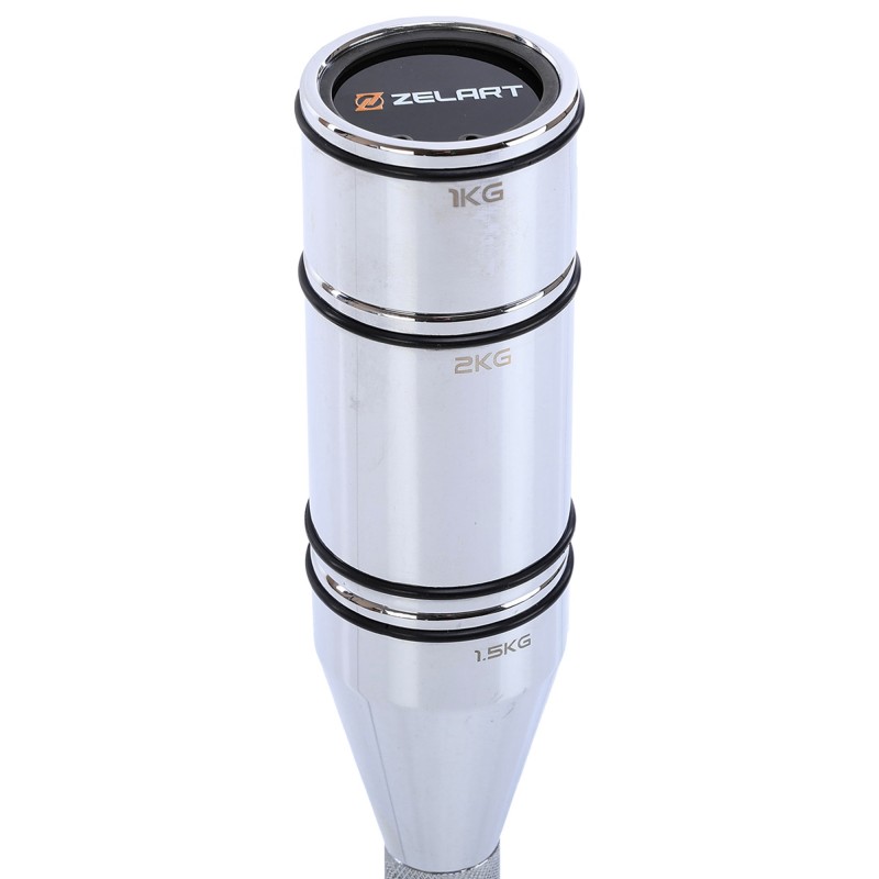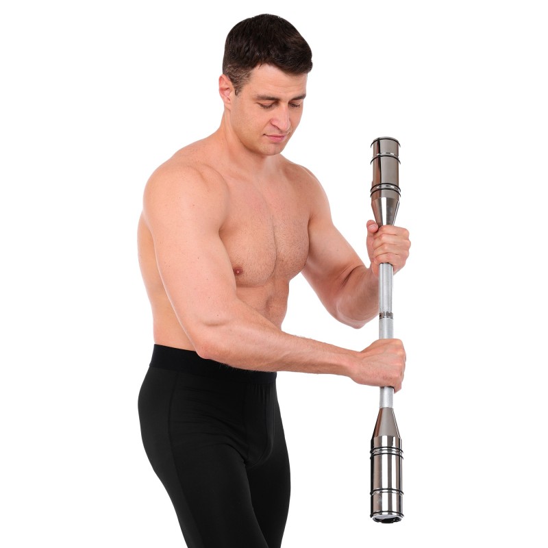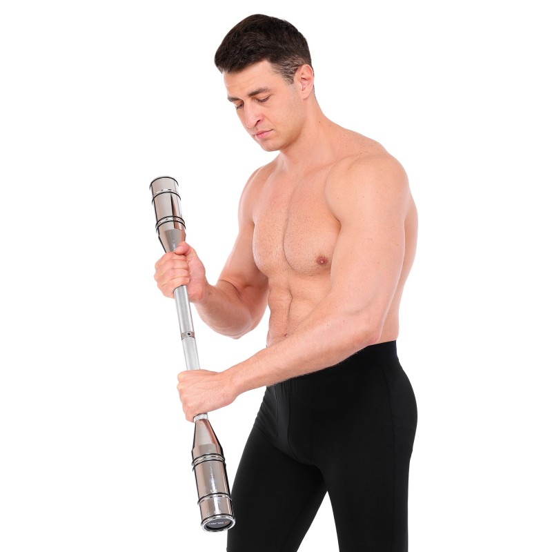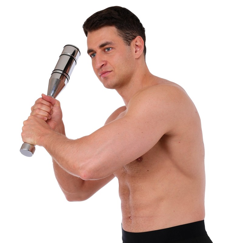 Особлива ручка з алмазним насіченням гарантує надійне зчеплення, запобігаючи ковзанню навіть під час інтенсивних тренувань. Система різьбового з\u2019єднання дозволяє змінювати вагу, додаючи або знімаючи сегменти, що робить булаву придатною для спортсменів із різним рівнем підготовки.