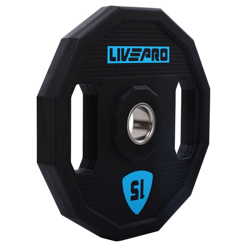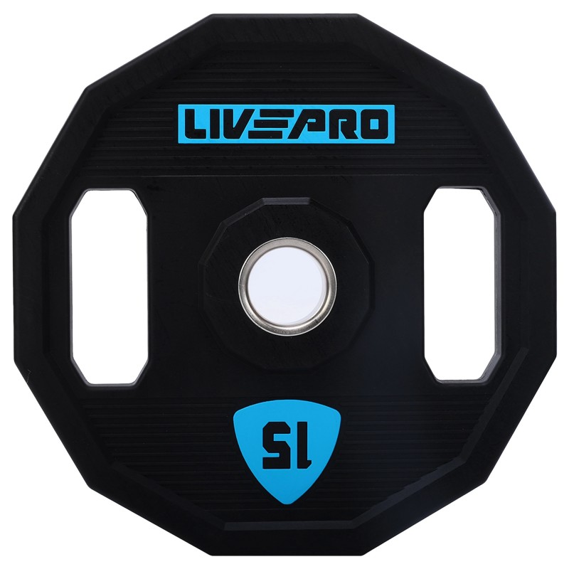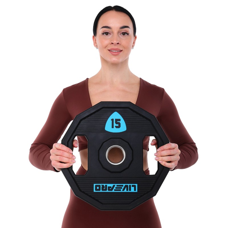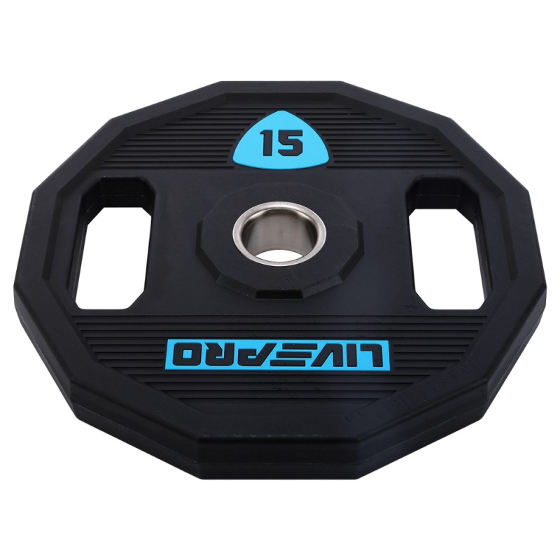 Блини диски поліуретанові 2 Handle металева втулка LiveUp ø51мм, 15кг, чорний, код: LP8023-15-S52