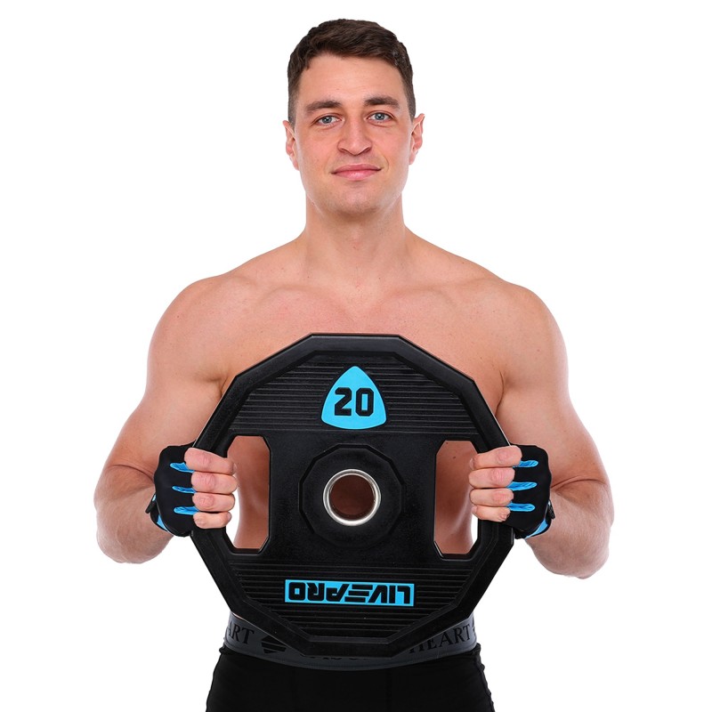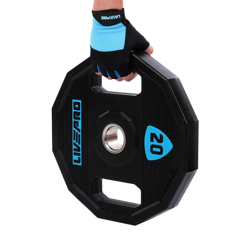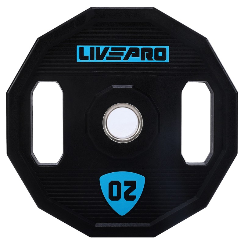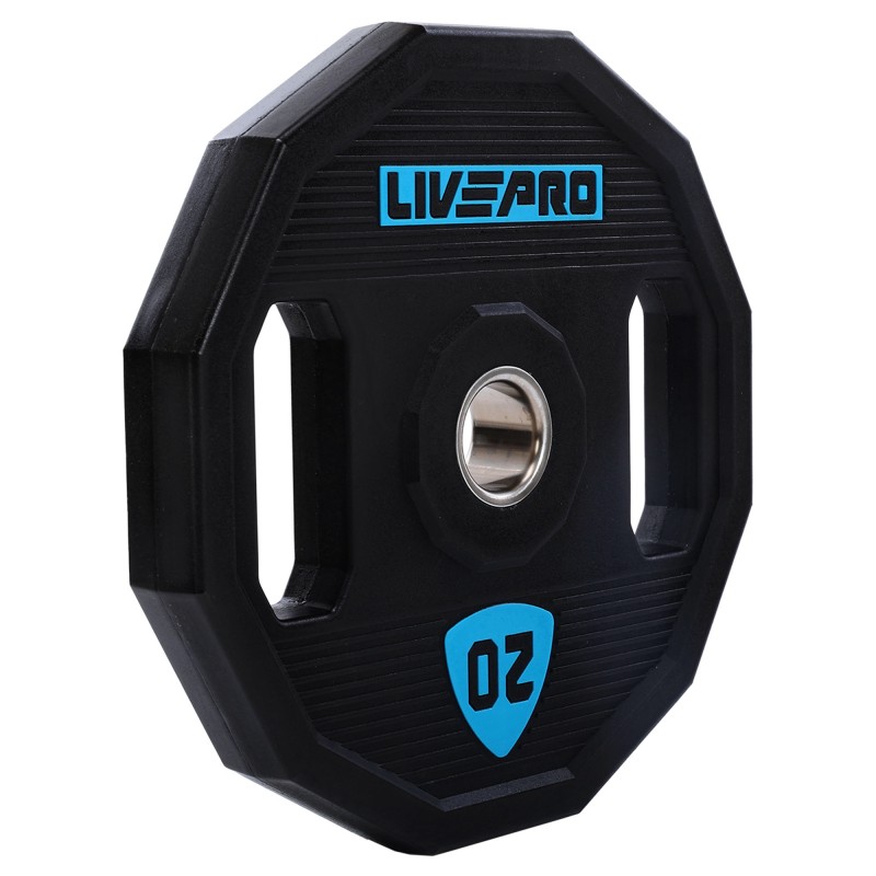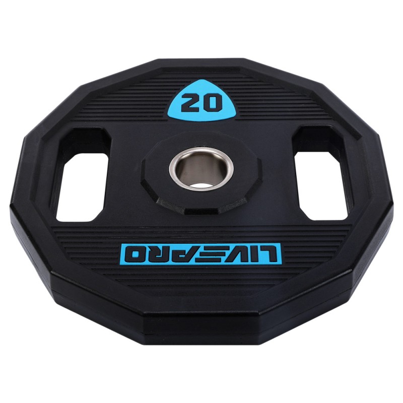Блини диски поліуретанові 2 Handle металева втулка LiveUp ø51мм, 20кг, чорний, код: LP8023-20-S52