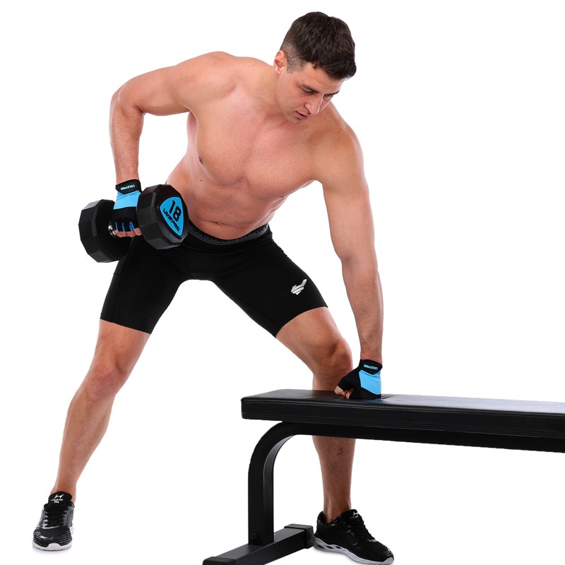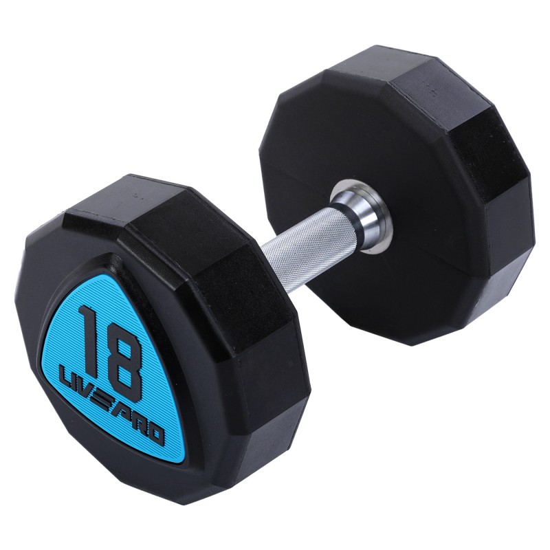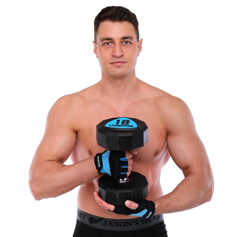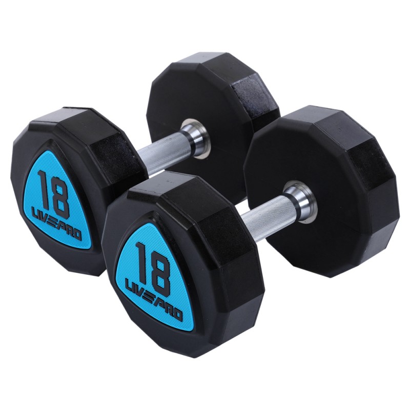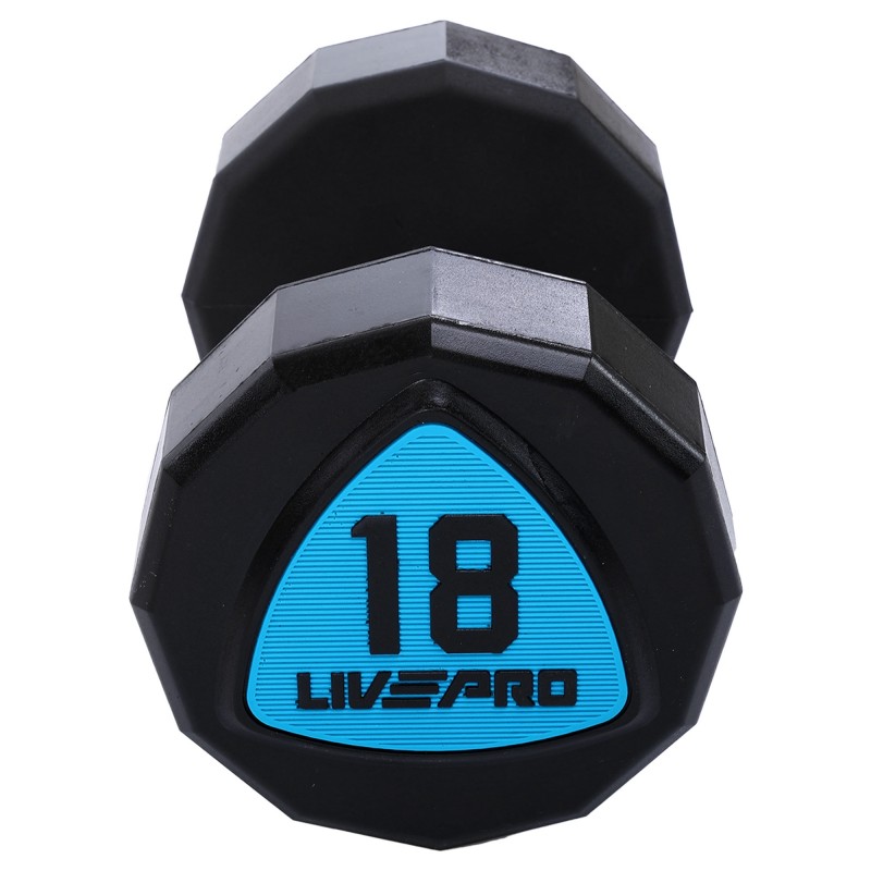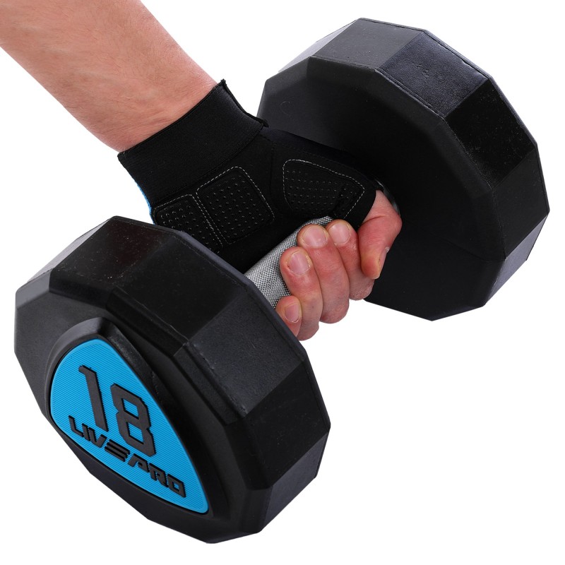 Гантелі цільні професійні з поліуретановим покриттям LiveUp 2х18кг, чорний-синій, код: LP8003-18-S52