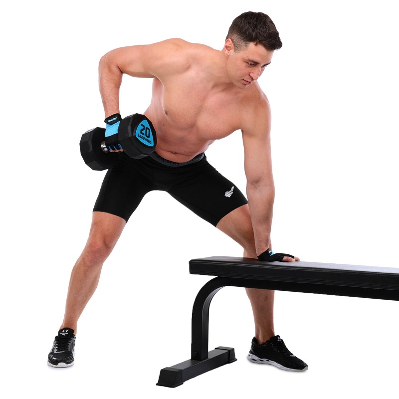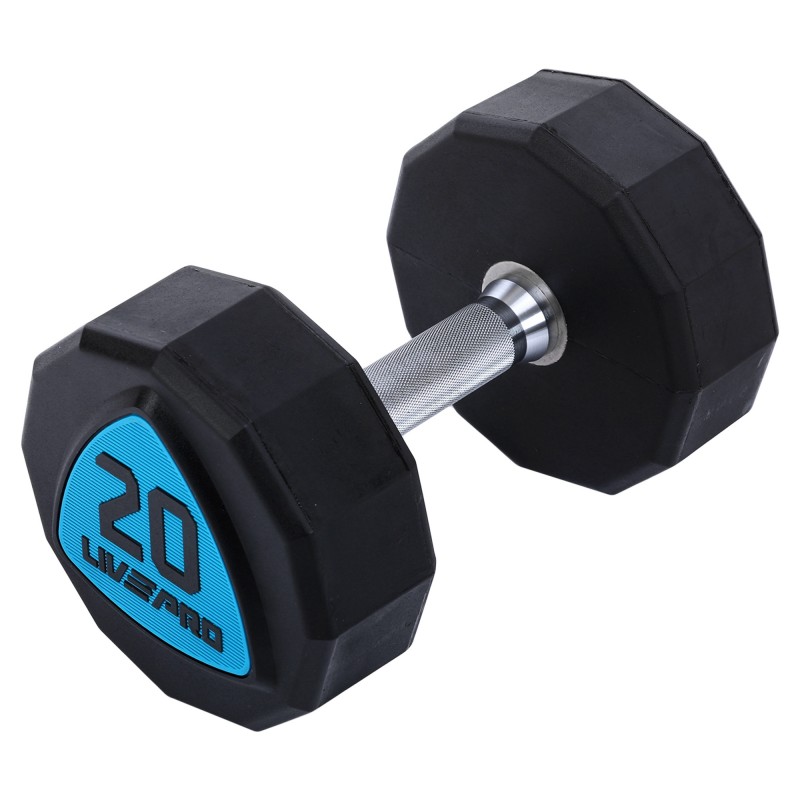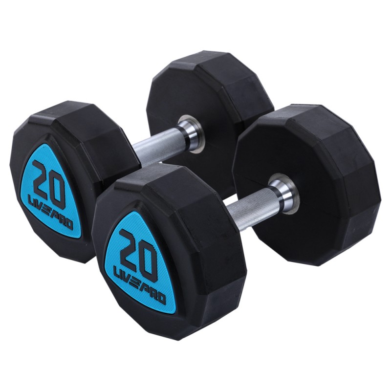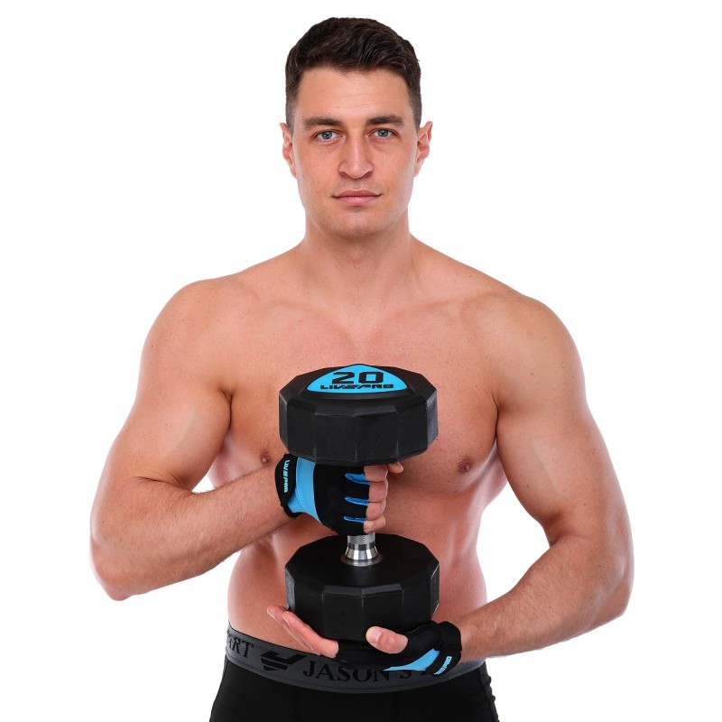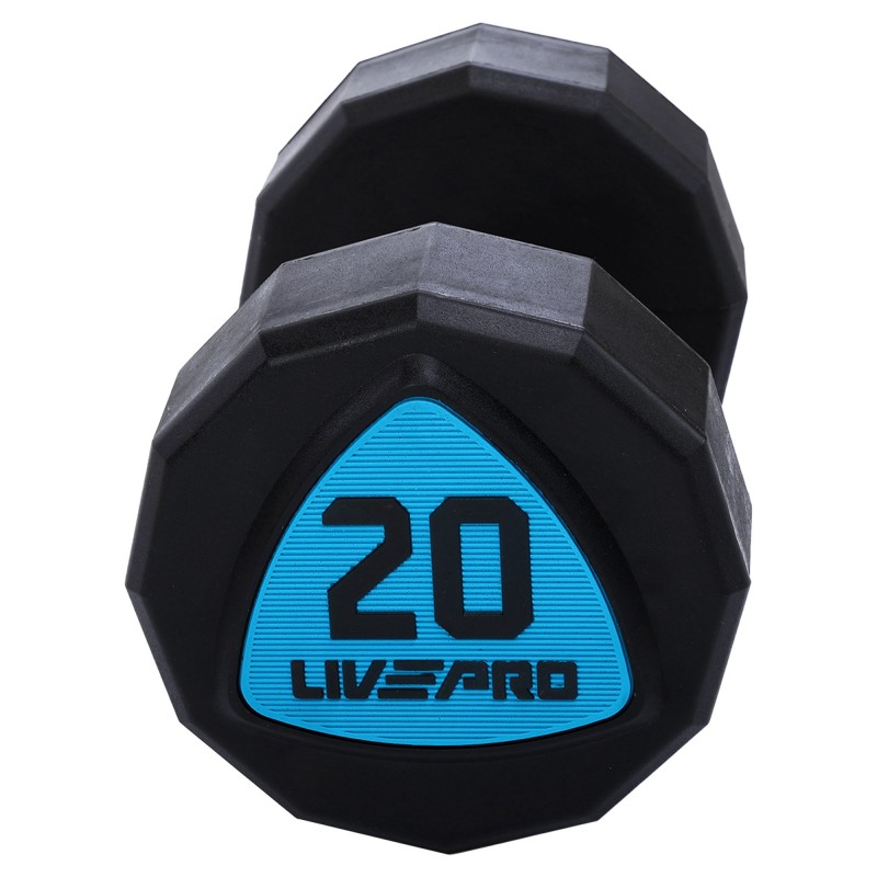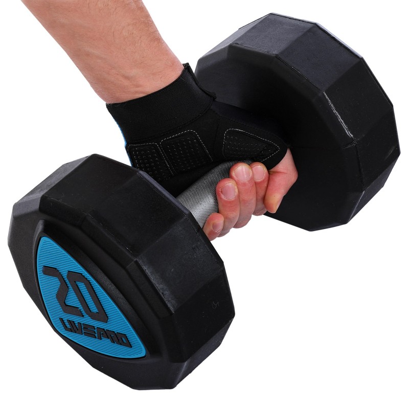 Гантелі цільні професійні з поліуретановим покриттям LiveUp 2х20кг, чорний-синій, код: LP8003-20-S52