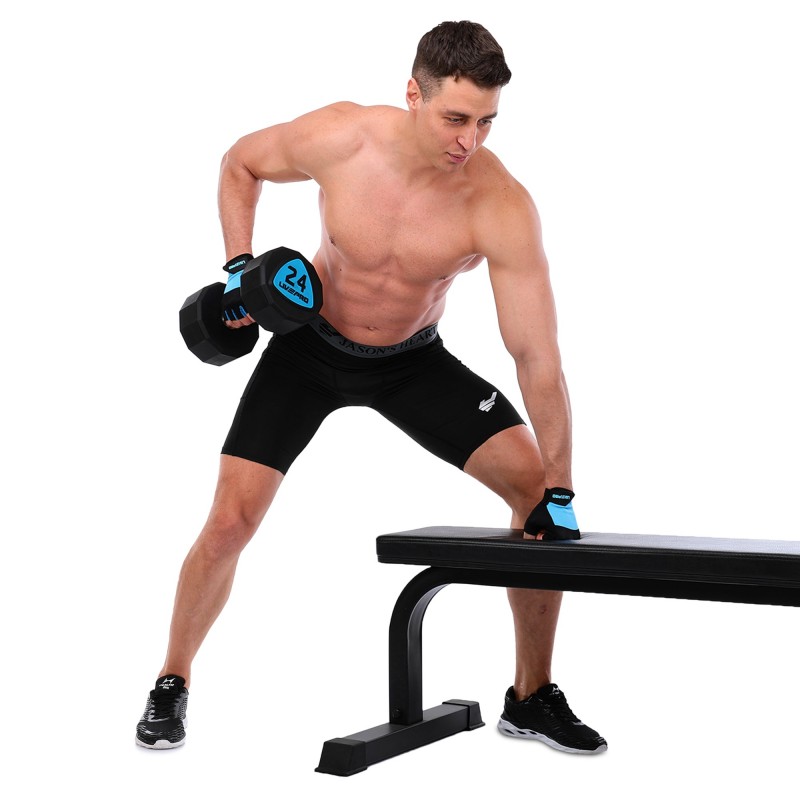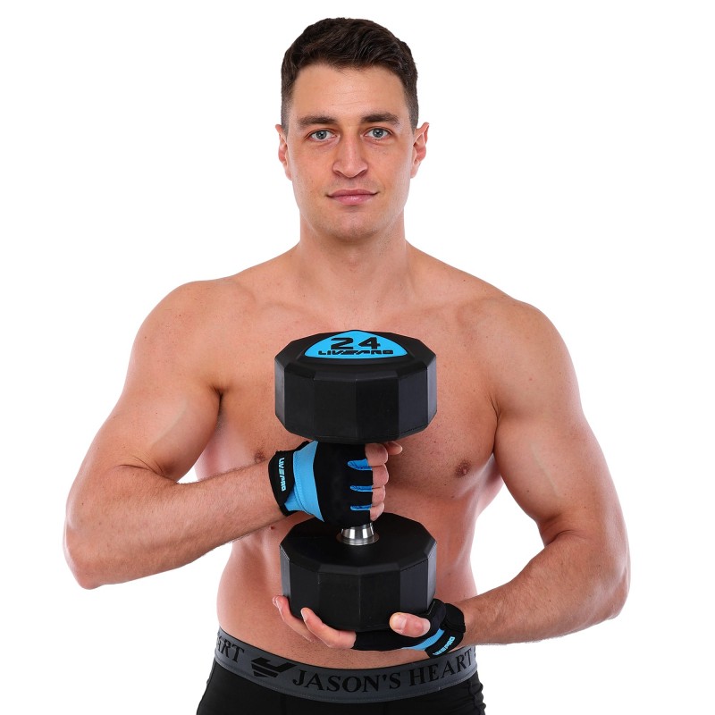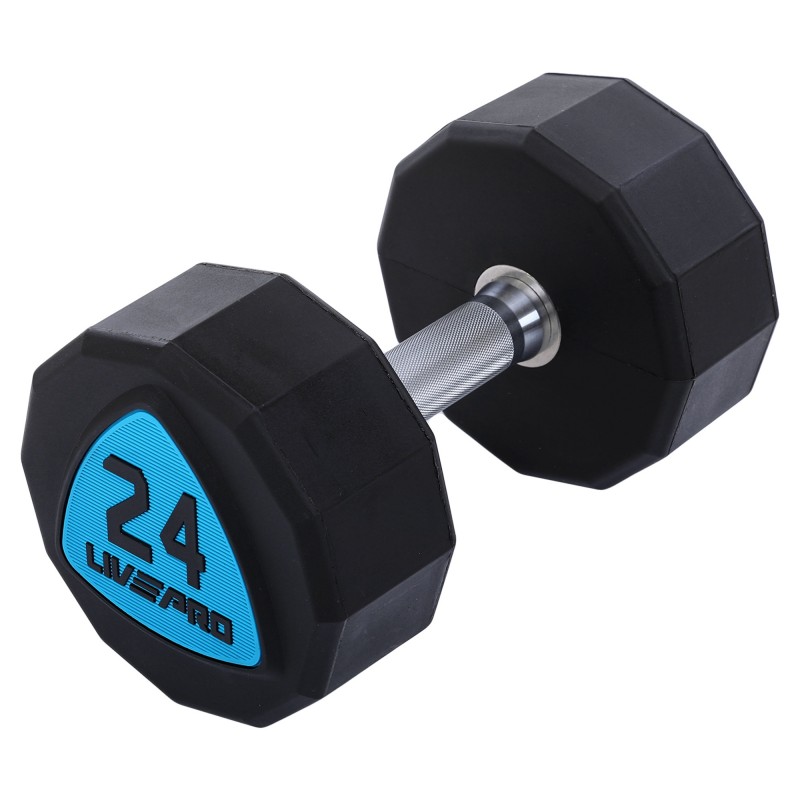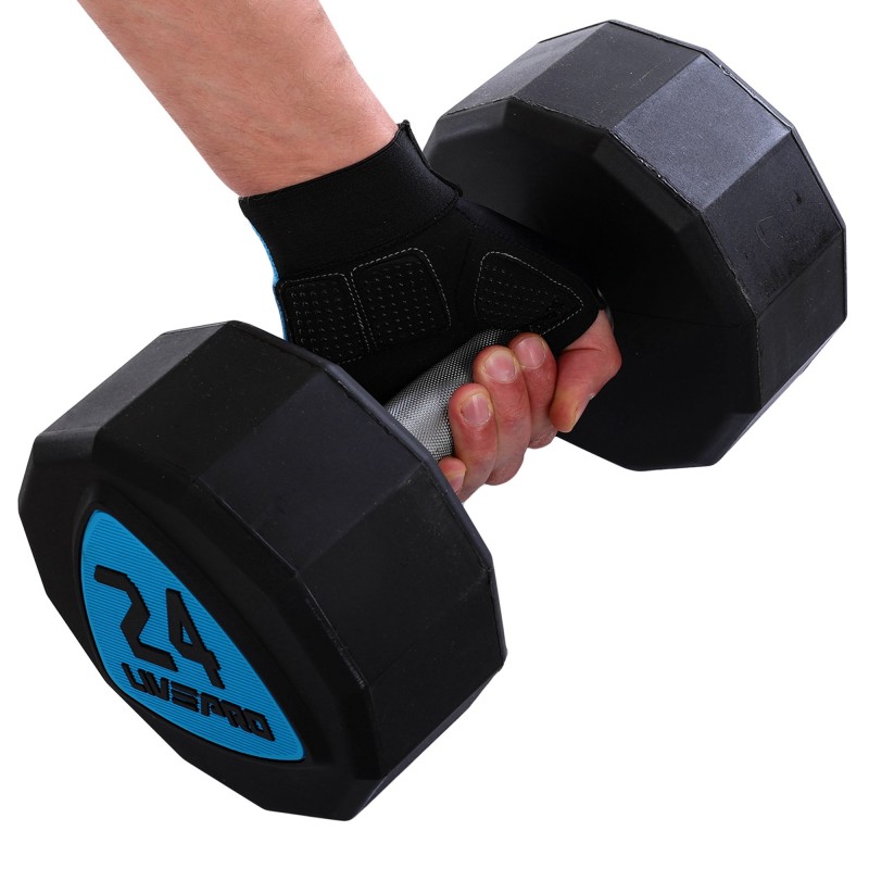 Гантелі цільні професійні з поліуретановим покриттям LiveUp 2х24кг, чорний-синій, код: LP8003-24-S52