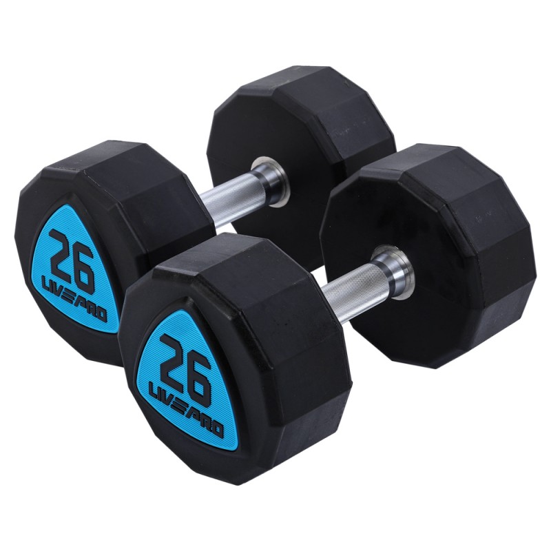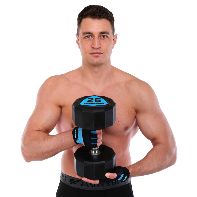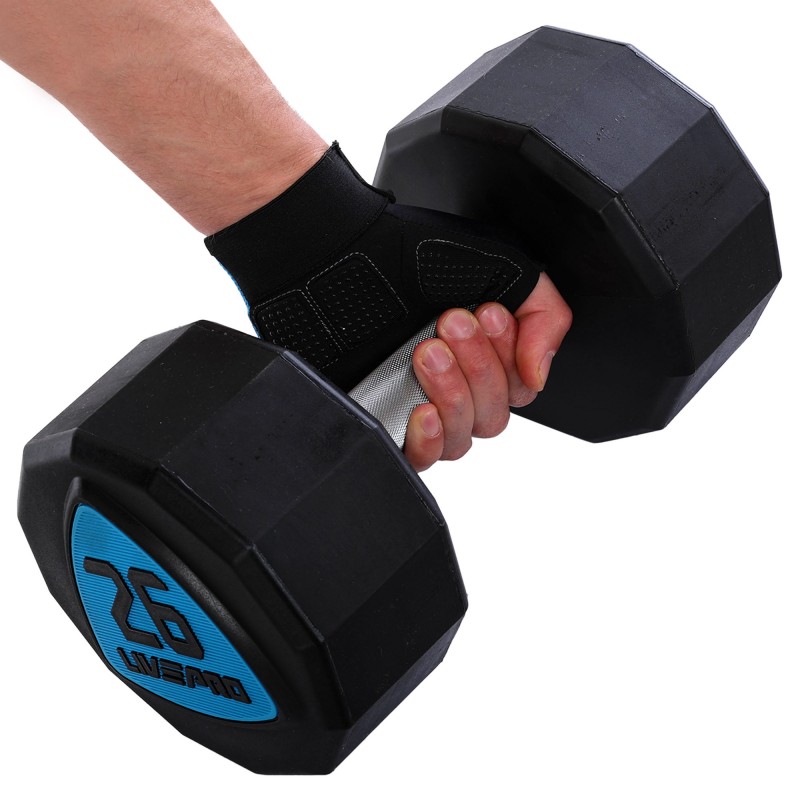 Гантелі цільні професійні з поліуретановим покриттям LiveUp 2х26кг, чорний-синій, код: LP8003-26-S52