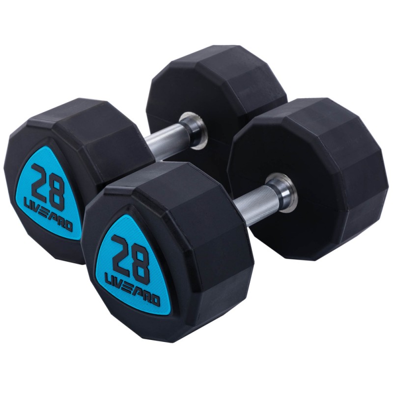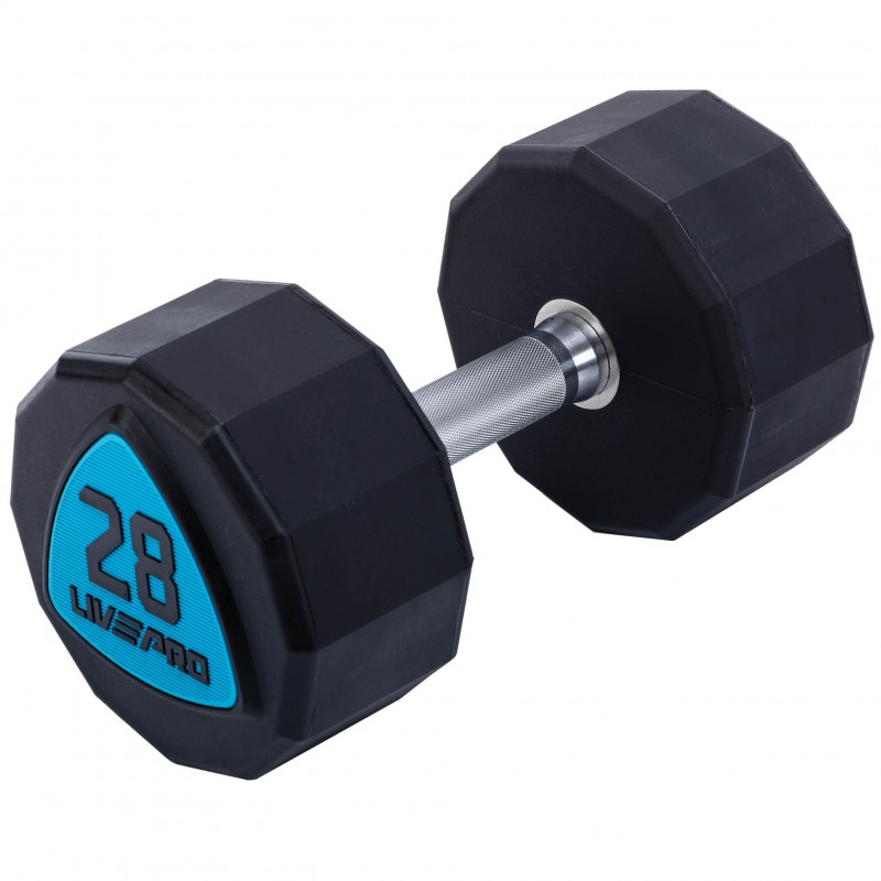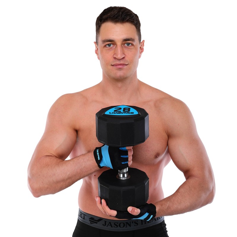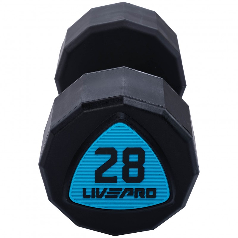 Гантелі цільні професійні з поліуретановим покриттям LiveUp 2х28кг, чорний-синій, код: LP8003-28-S52