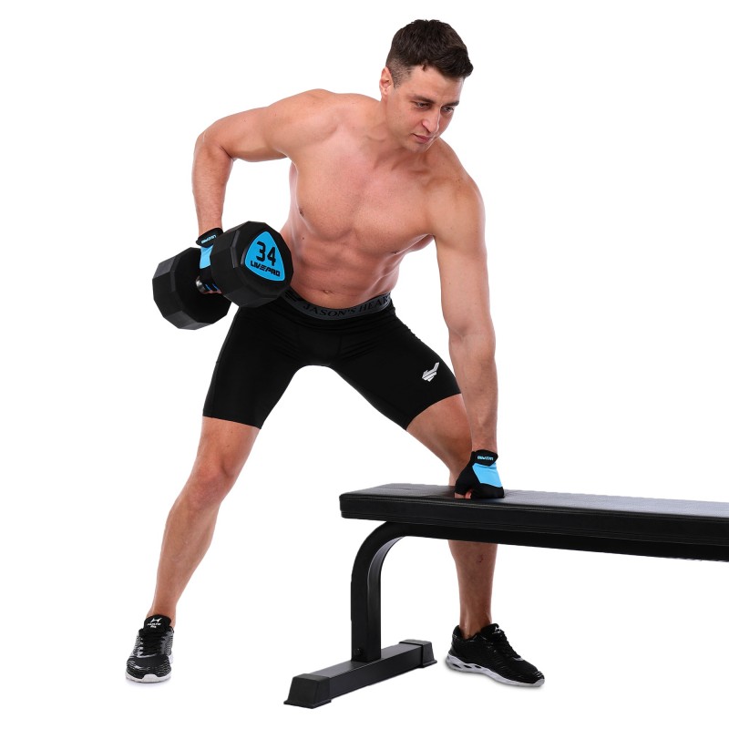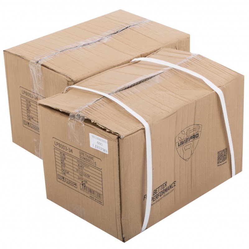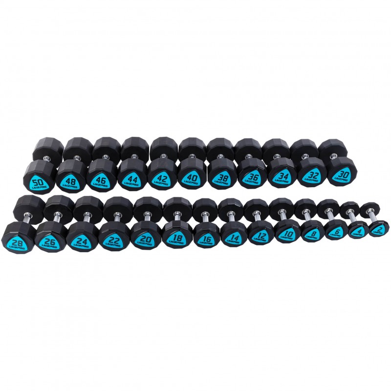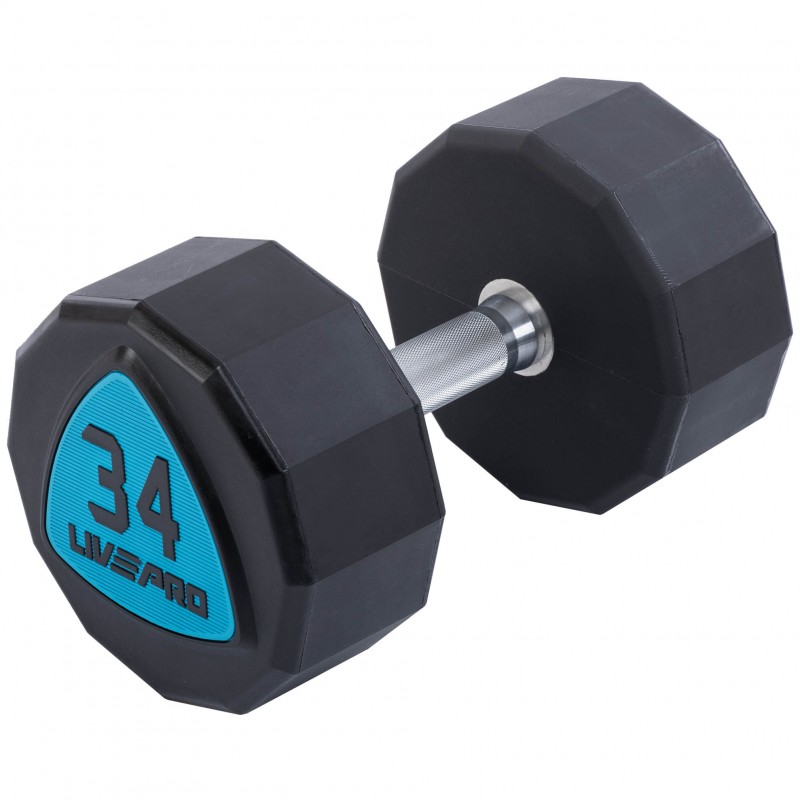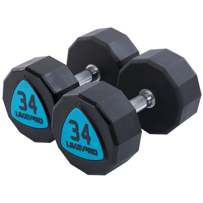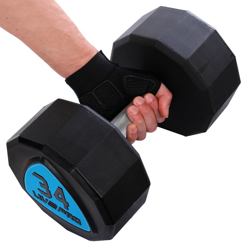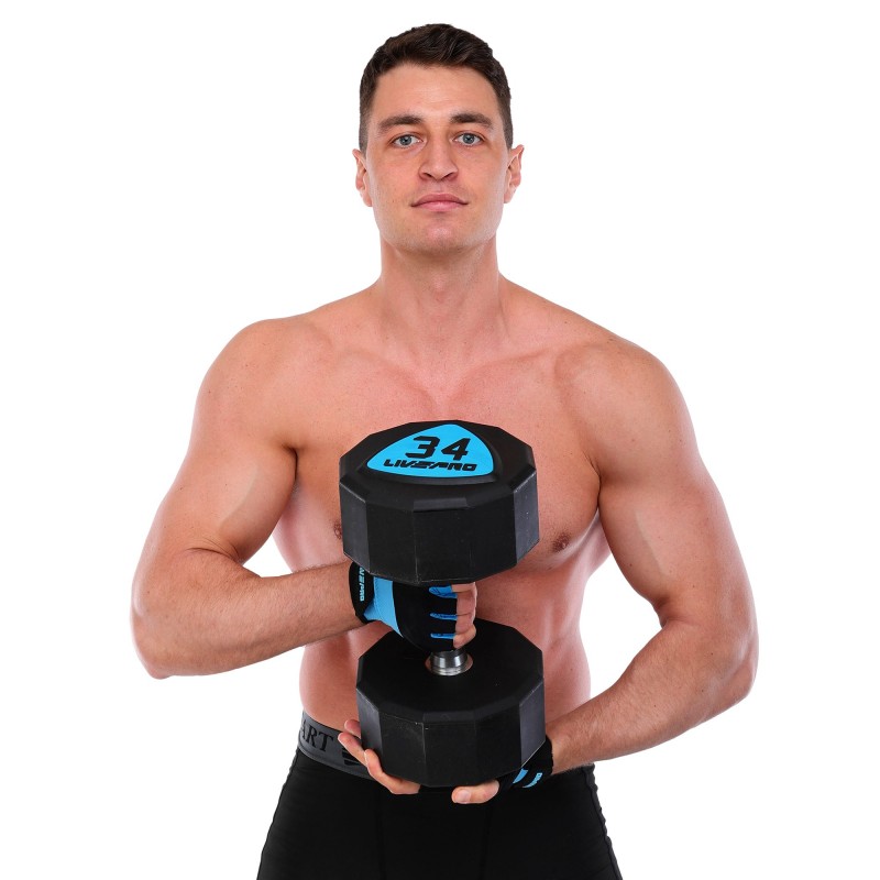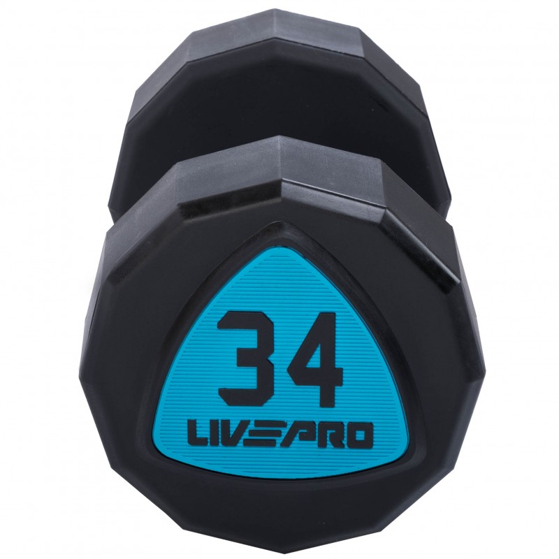 Гантелі цільні професійні з поліуретановим покриттям LiveUp 2х34кг, чорний-синій, код: LP8003-34-S52