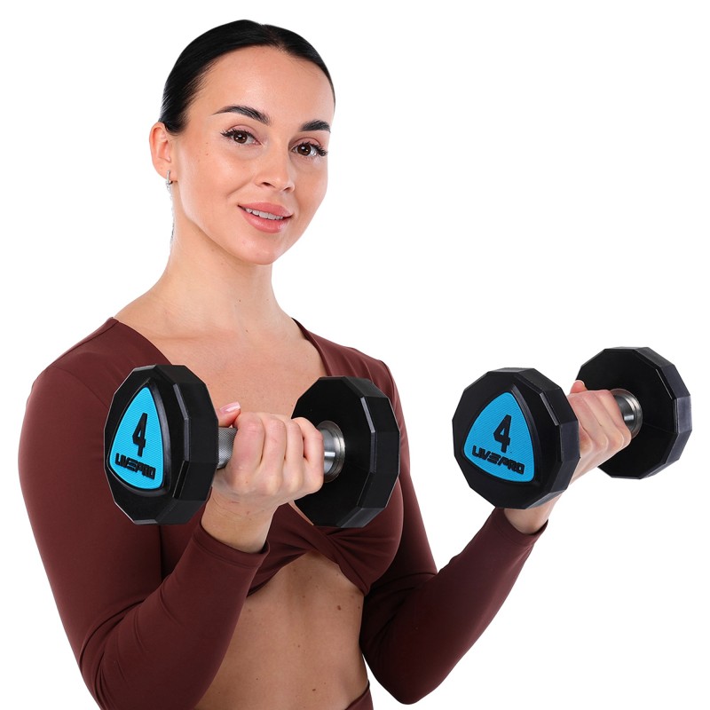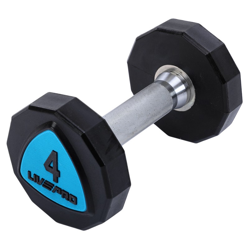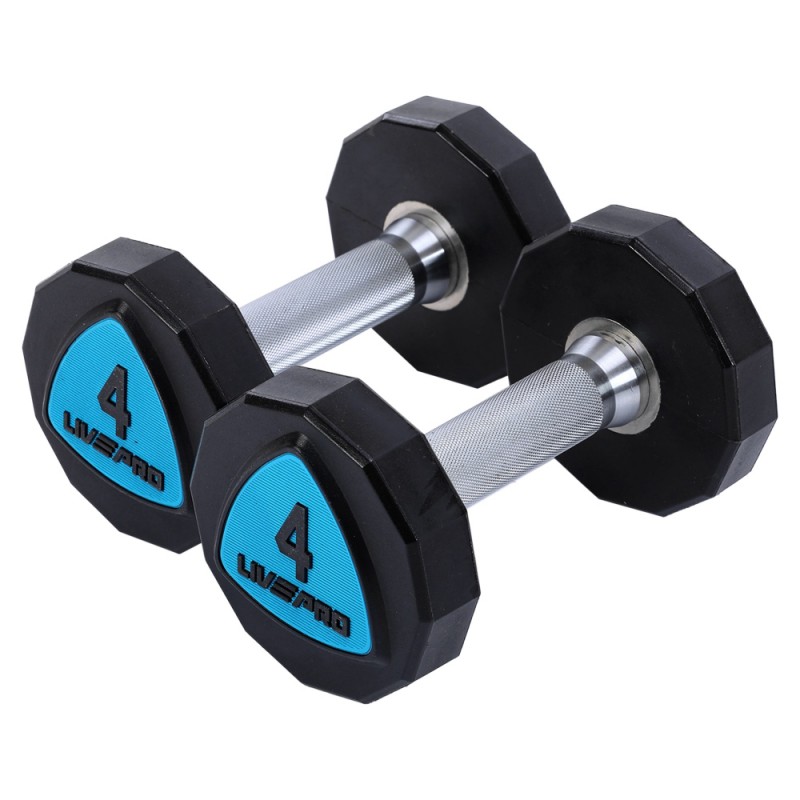 Гантелі цільні професійні з поліуретановим покриттям LiveUp 2х4кг, чорний-синій, код: LP8003-4-S52