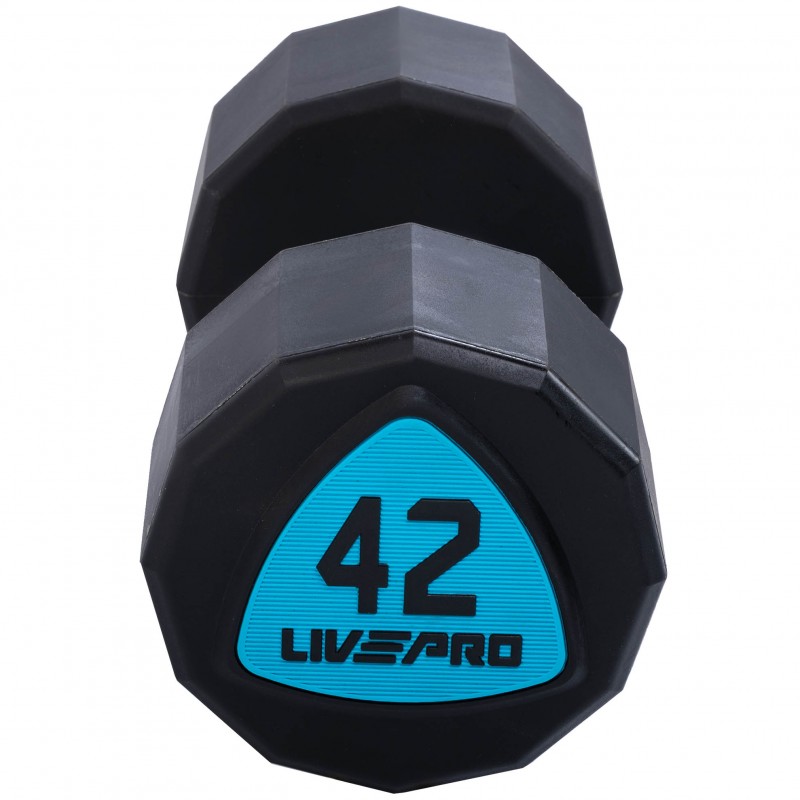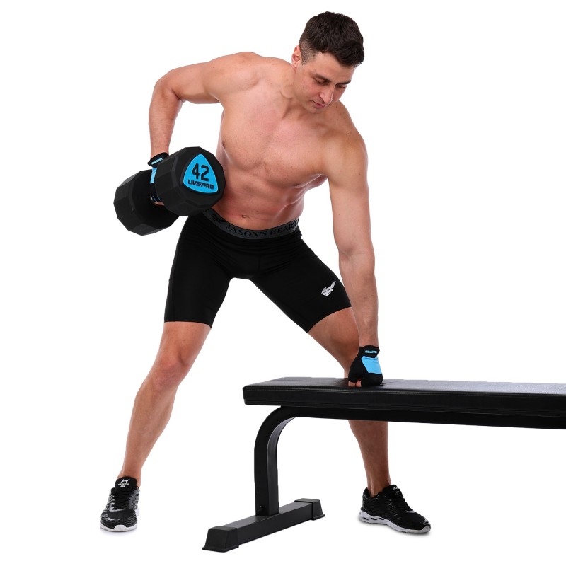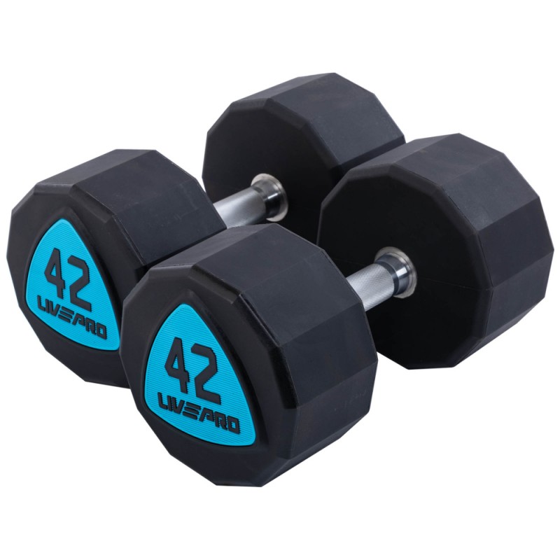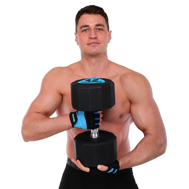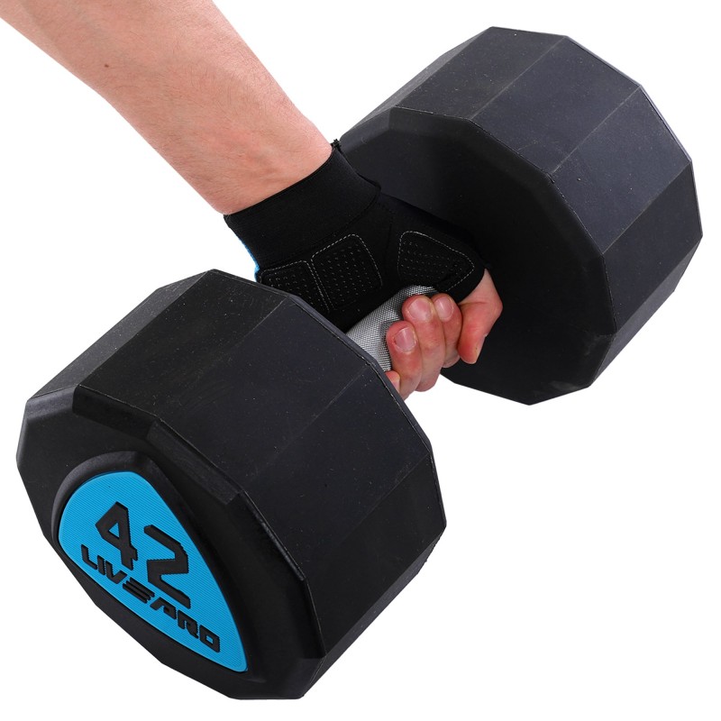 Гантелі цільні професійні з поліуретановим покриттям LiveUp 2х42кг, чорний-синій, код: LP8003-42-S52