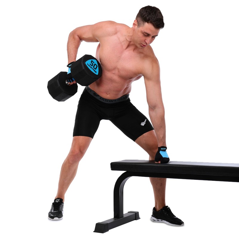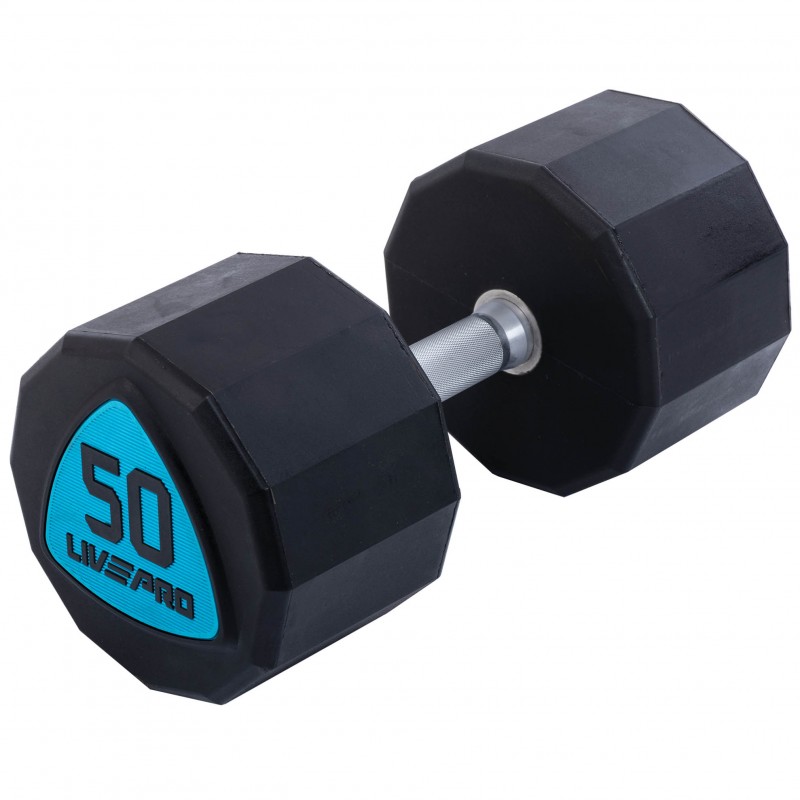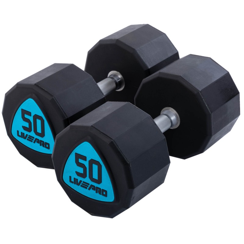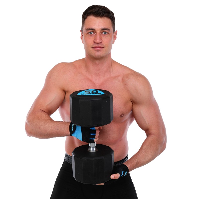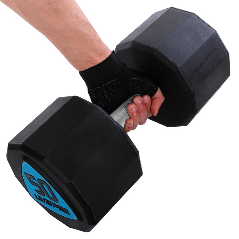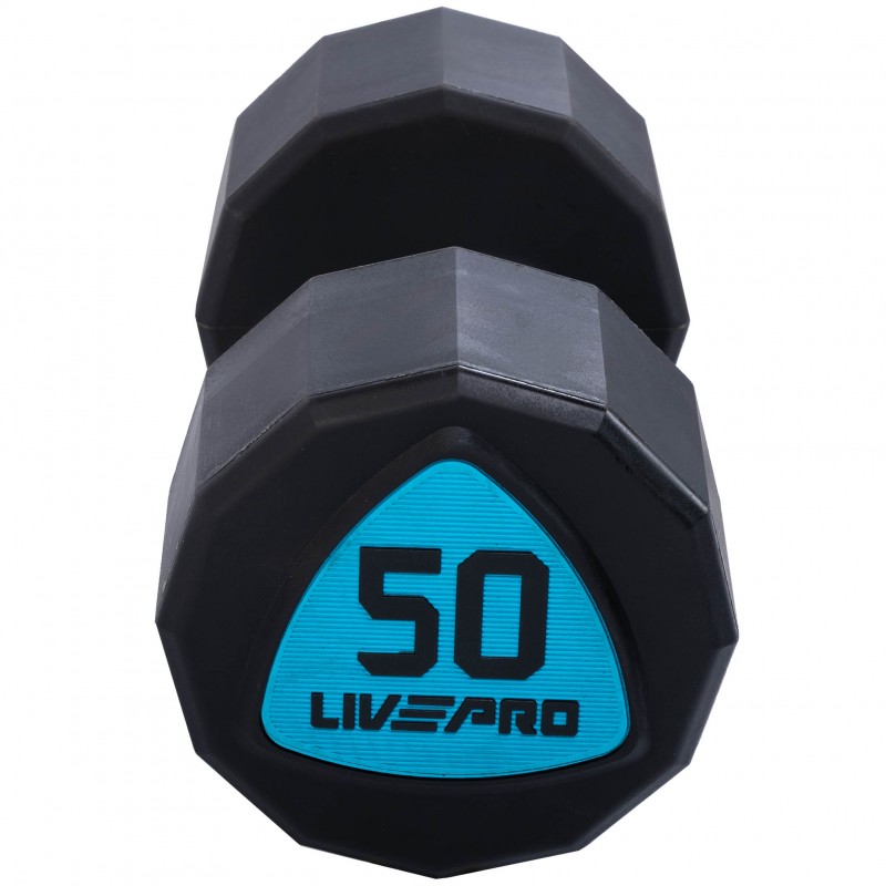 Гантелі цільні професійні з поліуретановим покриттям LiveUp 2х50кг, чорний-синій, код: LP8003-50-S52