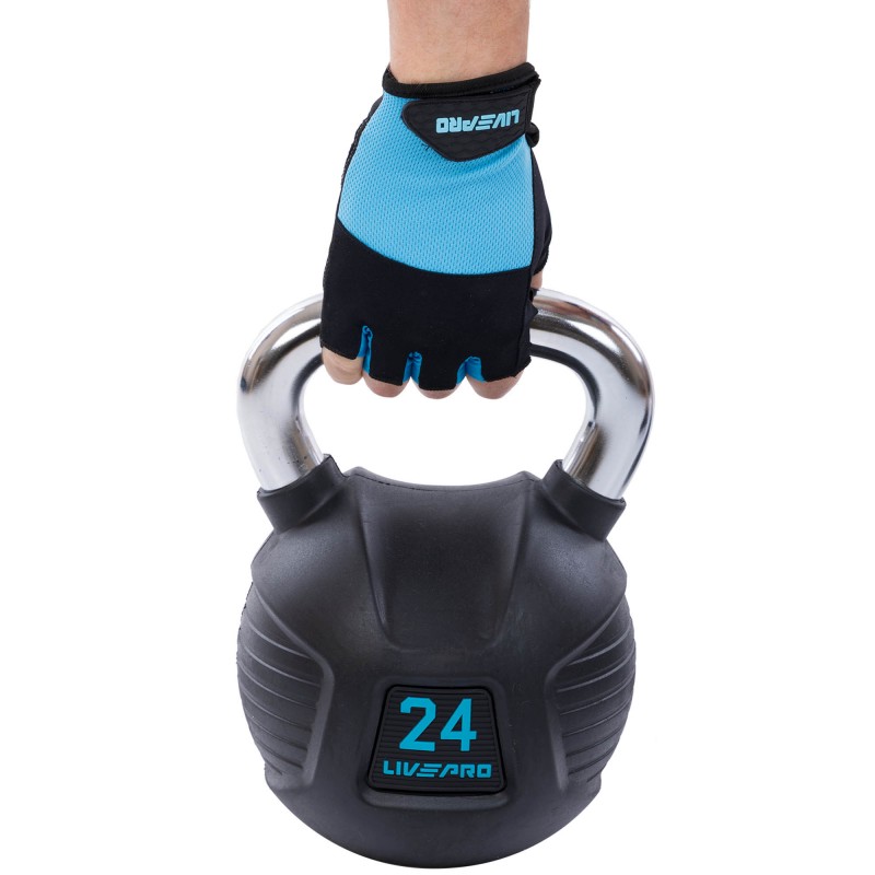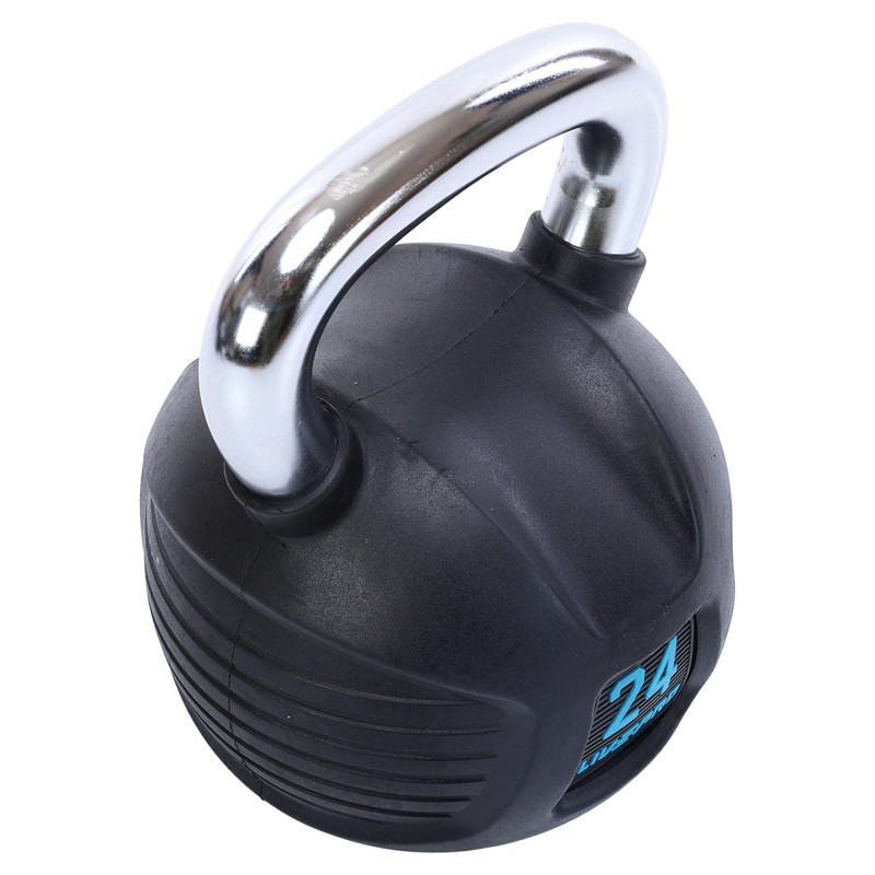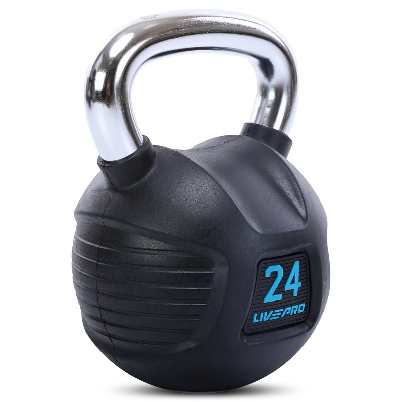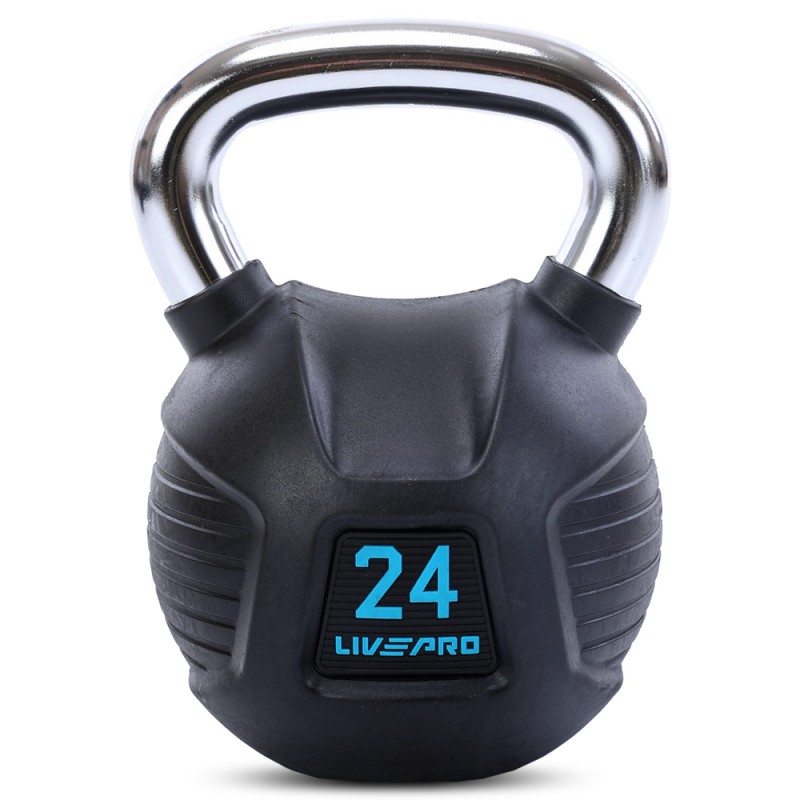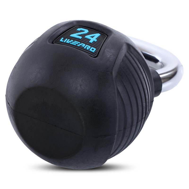 Гиря тренувальна цільна гумова з хромованою ручкою LiveUp 24кг, чорний, код: LP8043-24-S52