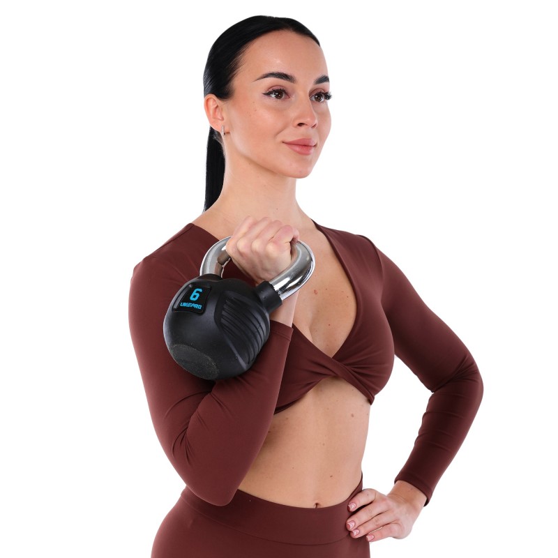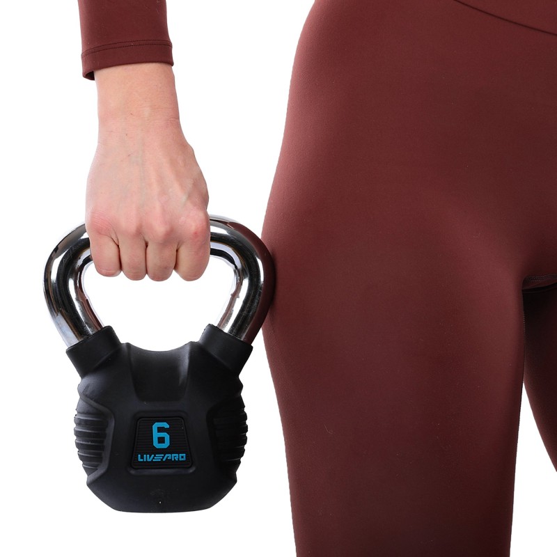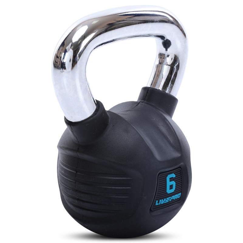 Гиря тренувальна цільна гумова з хромованою ручкою LiveUp 6кг, чорний, код: LP8043-6-S52
