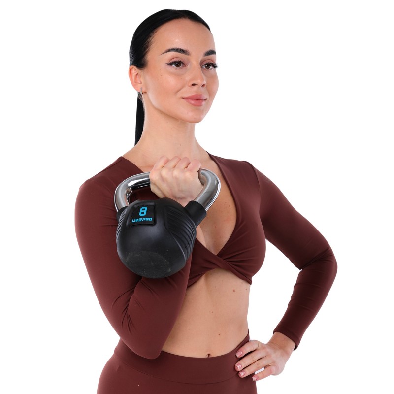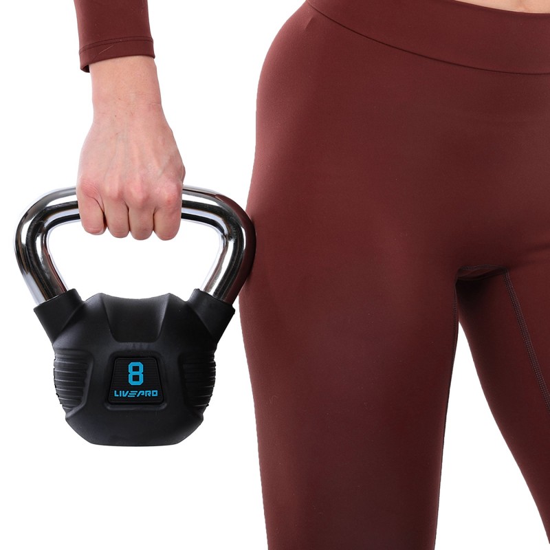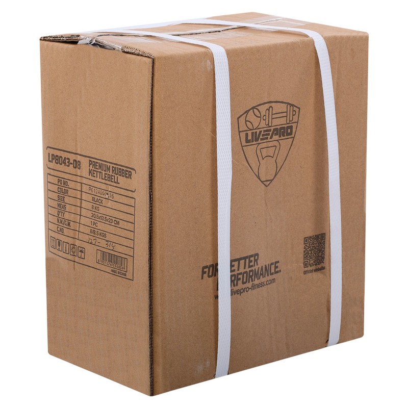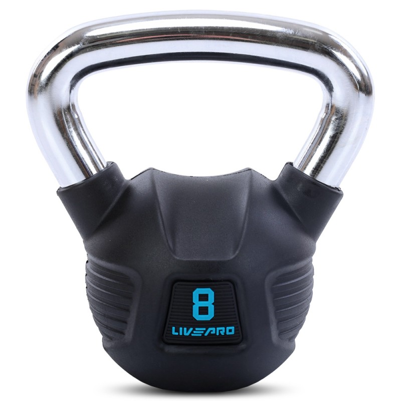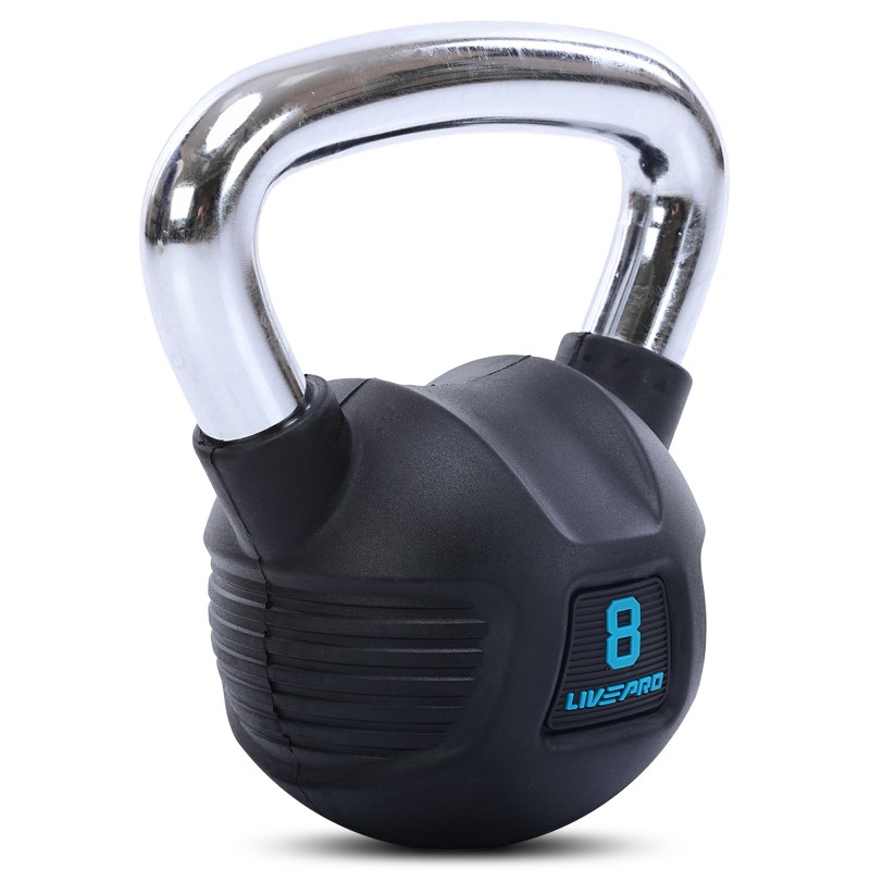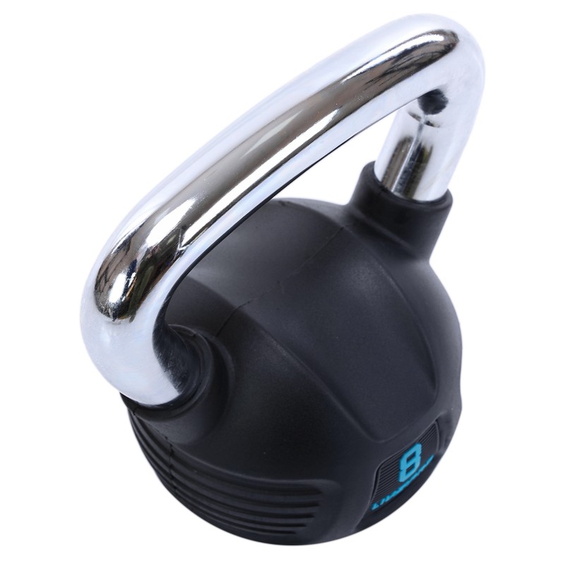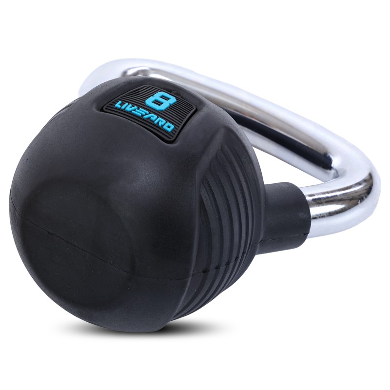 Гиря тренувальна цільна гумова з хромованою ручкою LiveUp 8кг, чорний, код: LP8043-8-S52