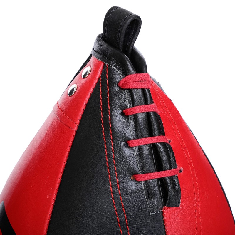 Висока зносостійкість забезпечується використанням натуральної шкіри, стійкої до стирання навіть при інтенсивній експлуатації. Внутрішня латексна камера гарантує оптимальний рівень пружності, що робить роботу з грушею максимально комфортною. Діаметр моделі становить 17 см, а висота – 25 см, що є ідеальним розміром для відпрацювання серій ударів із високою швидкістю.