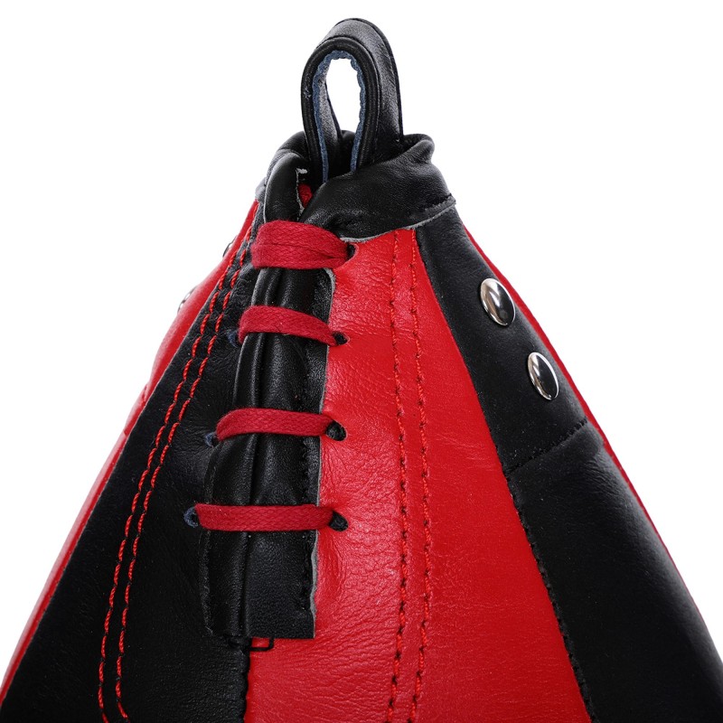 Висока зносостійкість забезпечується використанням натуральної шкіри, стійкої до стирання навіть при інтенсивній експлуатації. Внутрішня латексна камера гарантує оптимальний рівень пружності, що робить роботу з грушею максимально комфортною. Діаметр моделі становить 15 см, а висота – 22 см, що є ідеальним розміром для відпрацювання серій ударів із високою швидкістю.