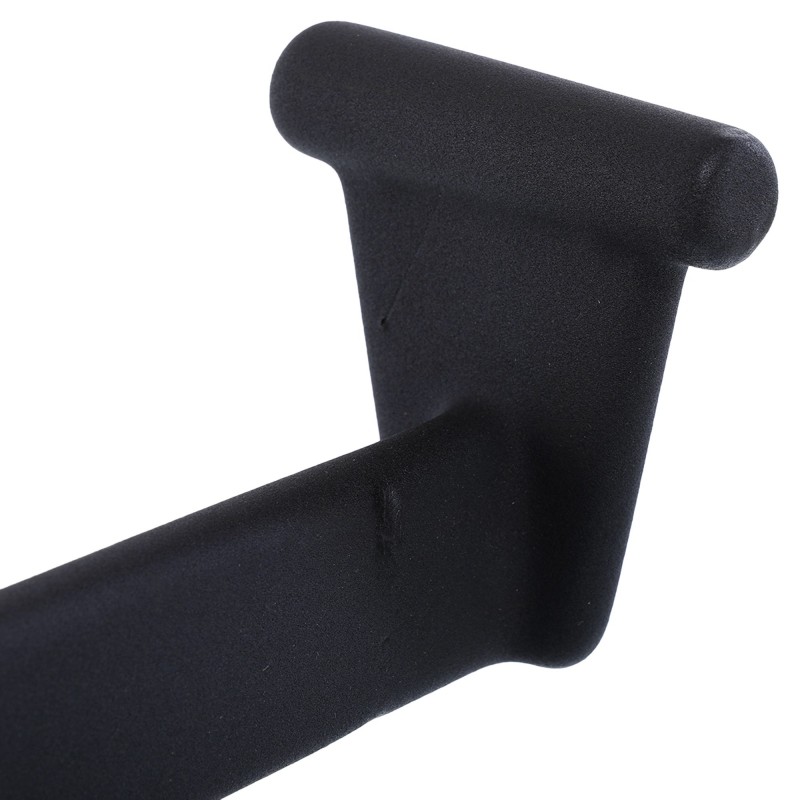Особливе нековзне покриття з полівінілхлориду (PVC) забезпечує надійне захоплення та запобігає ковзанню рук навіть при інтенсивній роботі. Це важлива деталь, яка робить використання рукоятки максимально зручним та безпечним. Незалежно від рівня навантаження, рукоятка зберігає свою стійкість, допомагаючи зосередитись на правильній техніці виконання вправ.