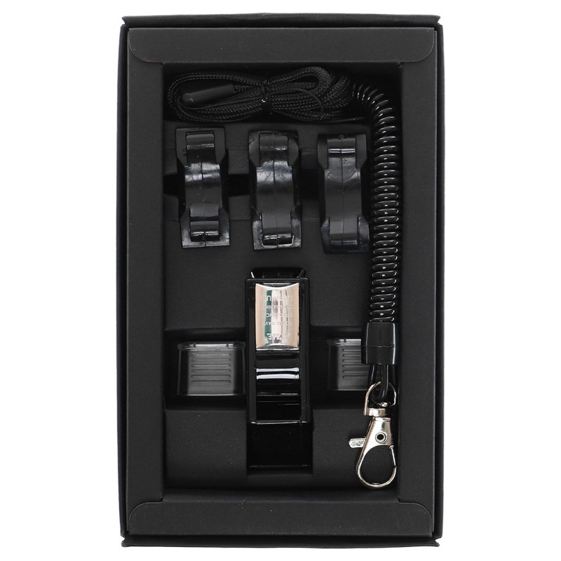 Набір упакований у невелику коробку. Крім кількох кріплень для свистка в комплекті також є два змінних мундштуки. Вони виготовлені з прозорого пластику.