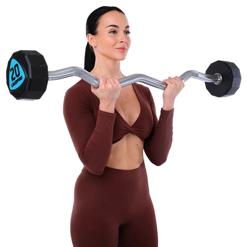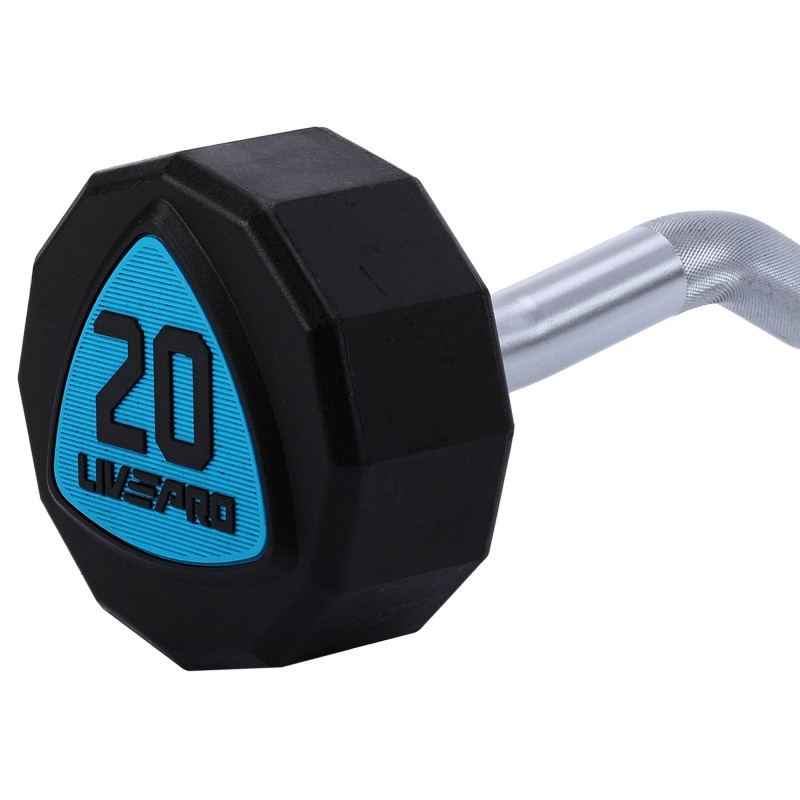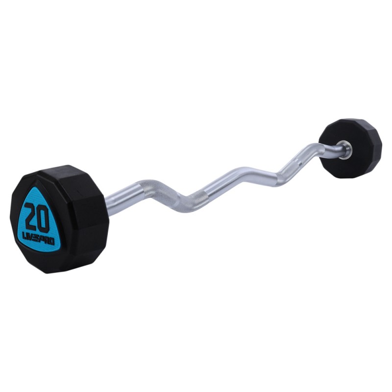 Штанга фіксована вигнута поліуретанова 12-стороння LiveUp довжина-89,2см, 20кг, чорний-синій, код: LP8013-20-S52